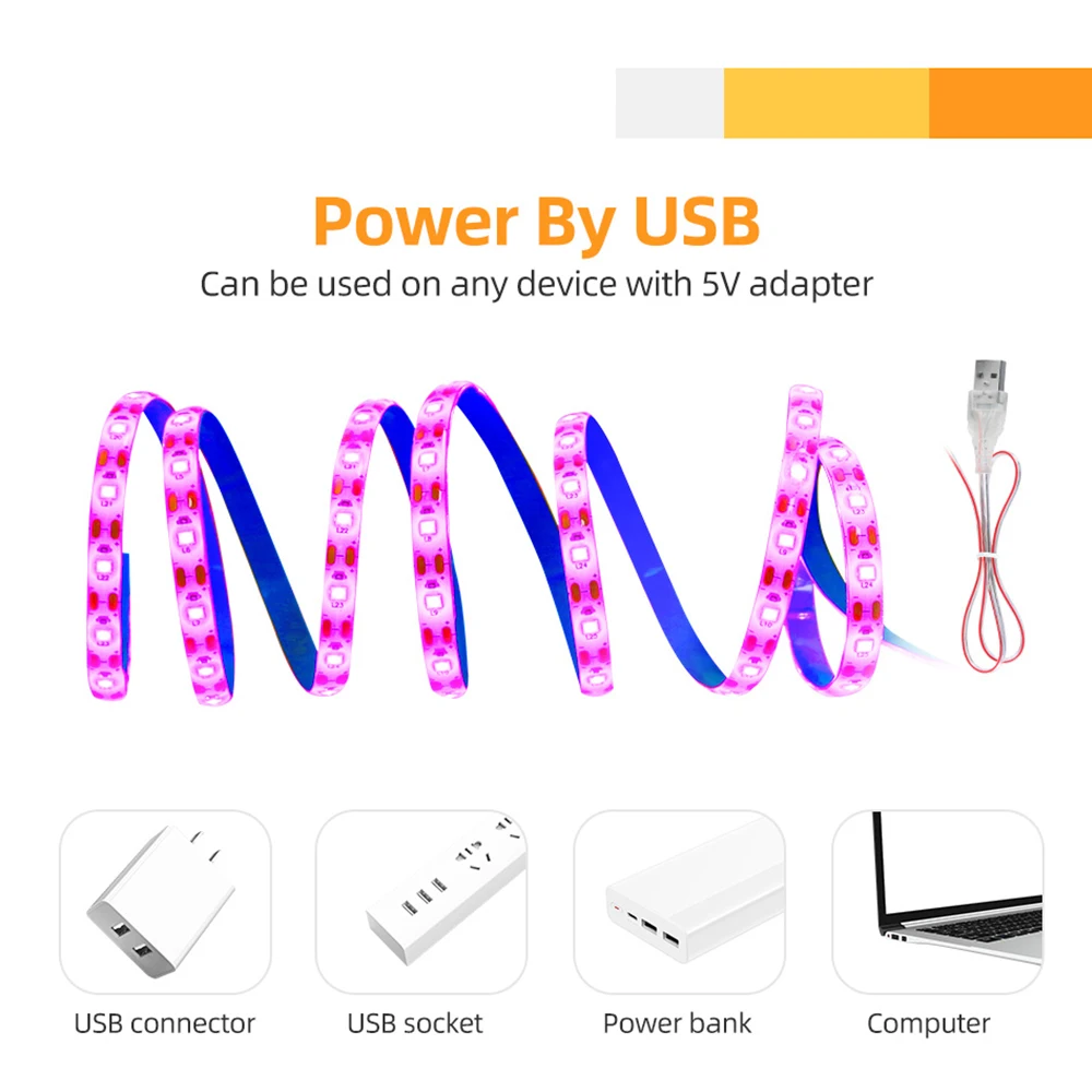 Особенности: * Светодиодный чип высокой цветопередачи, высококачественный светодиодный чип 2835 SMD, высокая цветопередача, низкий светильник, долговечный. * Спецификация изделия составляет 60 бусин на метр. • С помощью двустороннего скотча 3M на задней части для гирлянды, может быть напрямую и быстро вставить. * Управляется любыми устройствами с выходным usb-портом 5 В, такими как компьютер, настольный компьютер, ноутбук, планшет, таб, автомобильный прикуриватель и т. д. * Интимные линии пошива, чтобы соответствовать длине, которую вы хотите, вы можете организовать свои идеи по вашему желанию. * Дизайн антимертвых бусин, один светодиодный шарик лампы не яркий, другие бусины лампы, как правило, освещены, не влияет. * Безопасная медная проволока, хорошая электропроводность, быстрая теплоотдача, стабильная и безопасная. * Гибкий светильник для сгибания и складывания, более прочное качество. * Экологически чистый, без излучения, без мерцания, безвредный для человеческого глаза. * Энергосбережение с более высокой эффективностью. Отсутствие тепла, низкое энергопотребление, стабильная производительность. * Подходит для всех этапов роста растений, способствует прорастанию растений, цветению и плодоношению. * Цвет ускоряет рост листьев, растений, цветов, овощей, способствует цветению. * Идеально подходит для выращивания коробок, палаток для выращивания, Гидропоники DIY, бонсай, сада... И т. д. * Удобный, гуманистический и высокоэффективный. Спецификация: * Название продукта: USB светодиодный светильник для выращивания * Светильник Цвет: Полный spectrumpink фиолетовый * Светодиодный чип: полноспектральный чип 2835 * Напряжение: 5 В постоянного тока (источник питания USB) * Водонепроницаемый: не водонепроницаемый/IP65 водонепроницаемый • Длина ленты: 0,5 м/1 м/2 м/3 м * Количество светодиодный: 30 светодиодный s/60 Светодиодный s/120 светодиодный s/180 светодиодный s * Угол луча: 120 градусов * Температура хранения: -70 ~ 40 градусов Цельсия * Использование: с сильной клейкой бумагой на спине, его можно легко наклеить * Переключатели: только usb-разъем (светильник включен при включении питания)