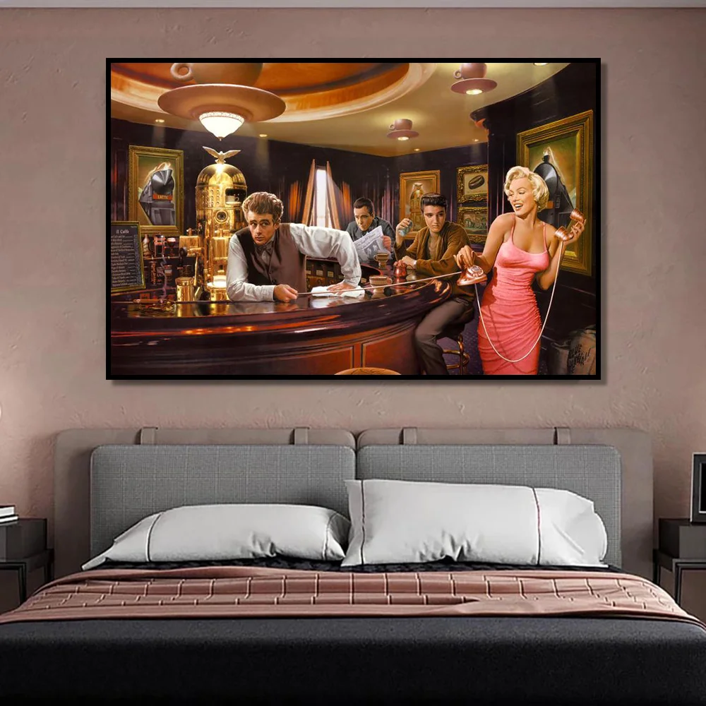 Ретро-постер Элвис Мэрилин Монро, рисунок на холсте, настенное украшение, настенная роспись, Современный домашний декор, без оборки