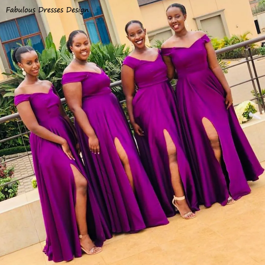 Платье простое ТРАПЕЦИЕВИДНОЕ с открытыми плечами, V-образным вырезом и разрезом, длинное фиолетовое платье подружки невесты, 2021