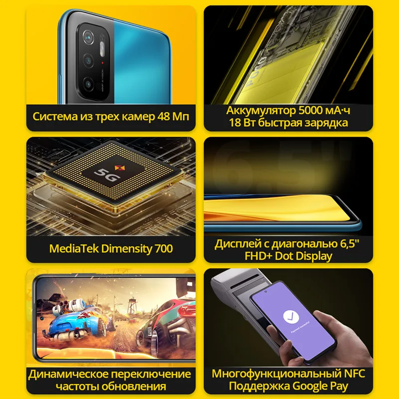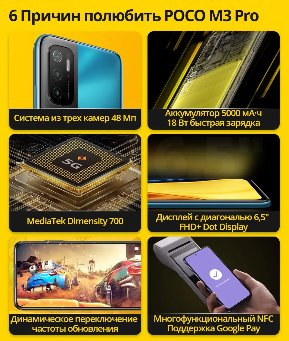 Смартфон POCO M3 Pro NFC RU 64ГБ, РОСТЕСТ, официальная гарантия, доставка от 2 дней