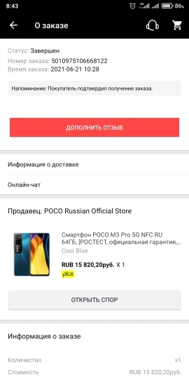 Страна: RU Color: Cool Blue Доставка: Tmall Почта России - посылка онлайн 29.06.2021