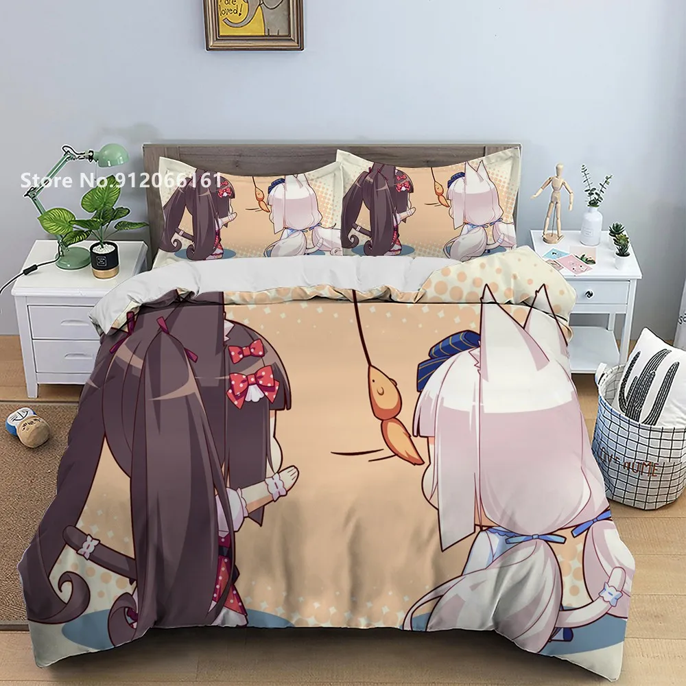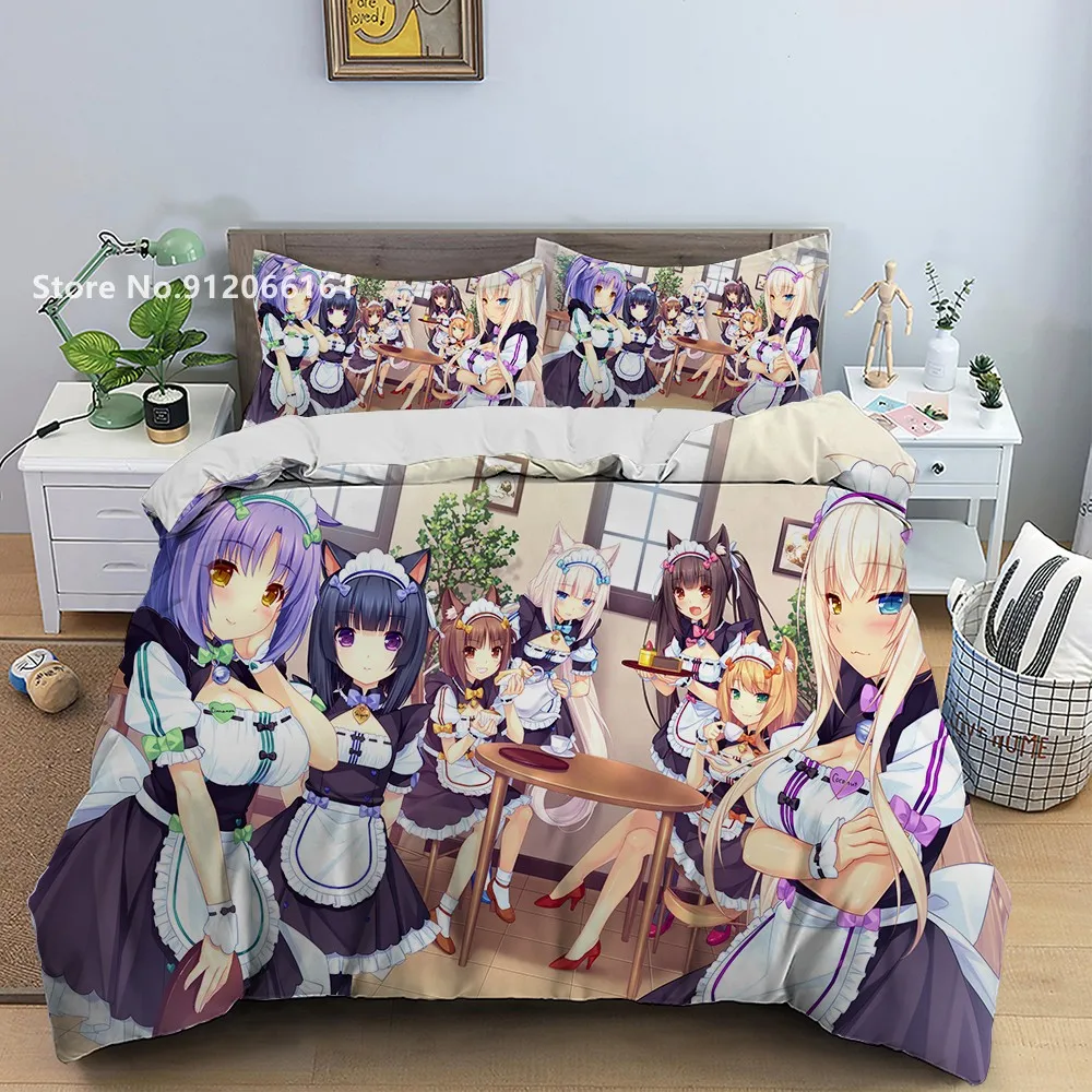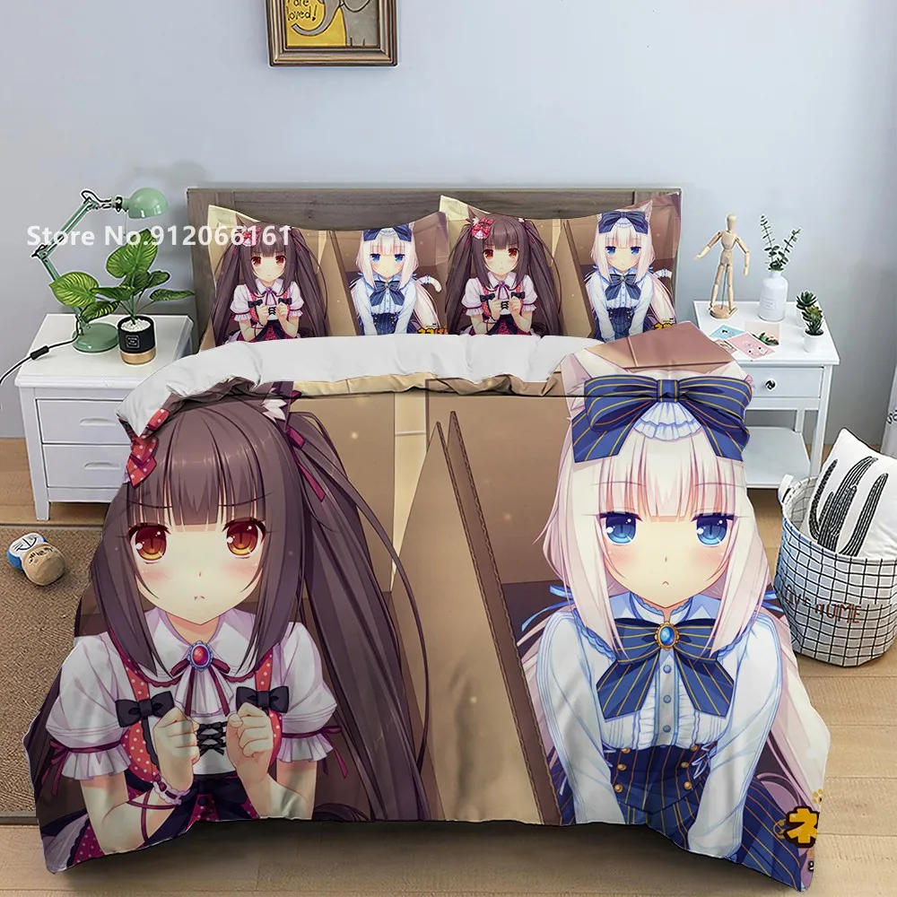 Комплект постельного белья Nekopara с 3D рисунком, пододеяльник для привлекательной девушки, мультяшная кровать в стиле аниме, Набор чехлов, наволочка для односпальной королевы и короля, лидер продаж, под заказ
