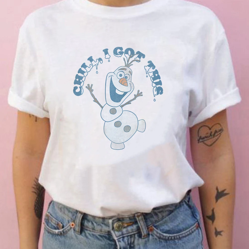 Футболка в стиле Харадзюку, футболка с рисунком Большого Лица из мультфильма Холодное сердце Олафа, женские белые футболки с рисунком, топы, модная футболка унисекс с коротким рукавом