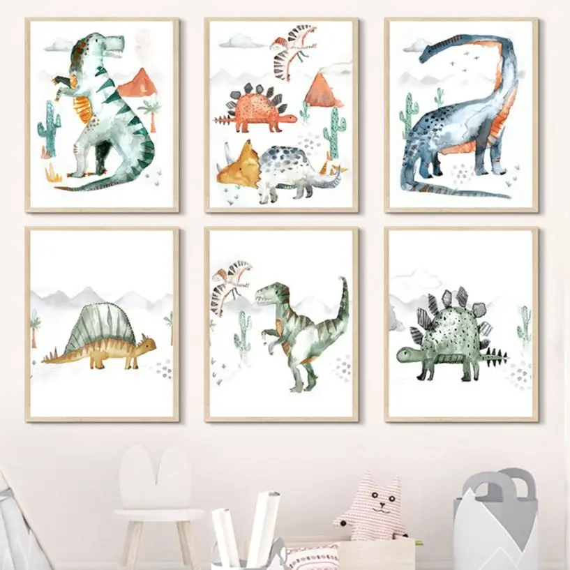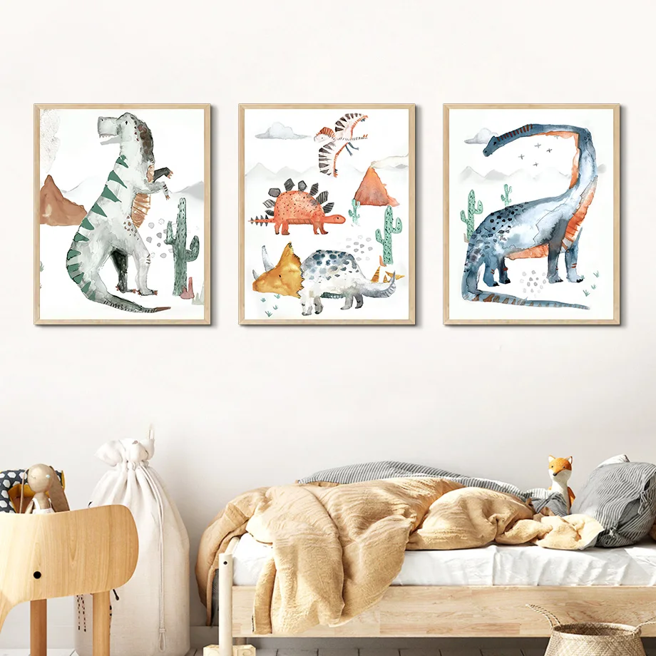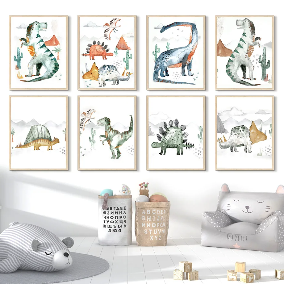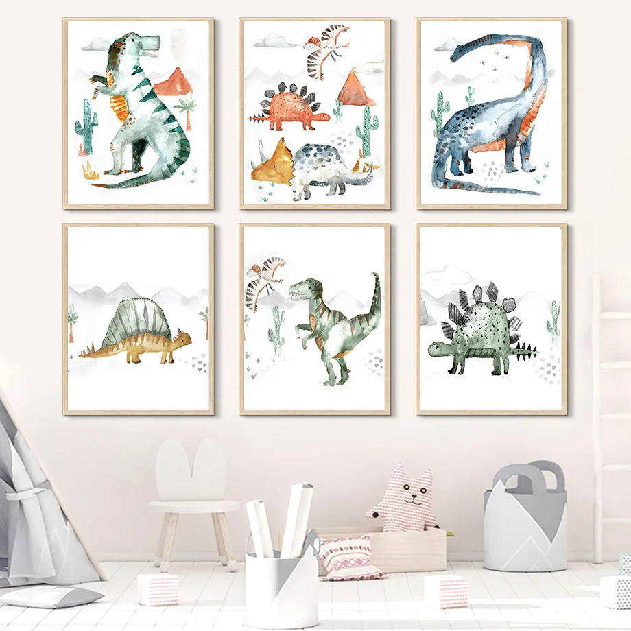 Милый динозавр, животные, Трицератопс, тираннозавр, искусство, холст, живопись, скандинавские постеры и принты, настенные фотографии для детской комнаты, Декор