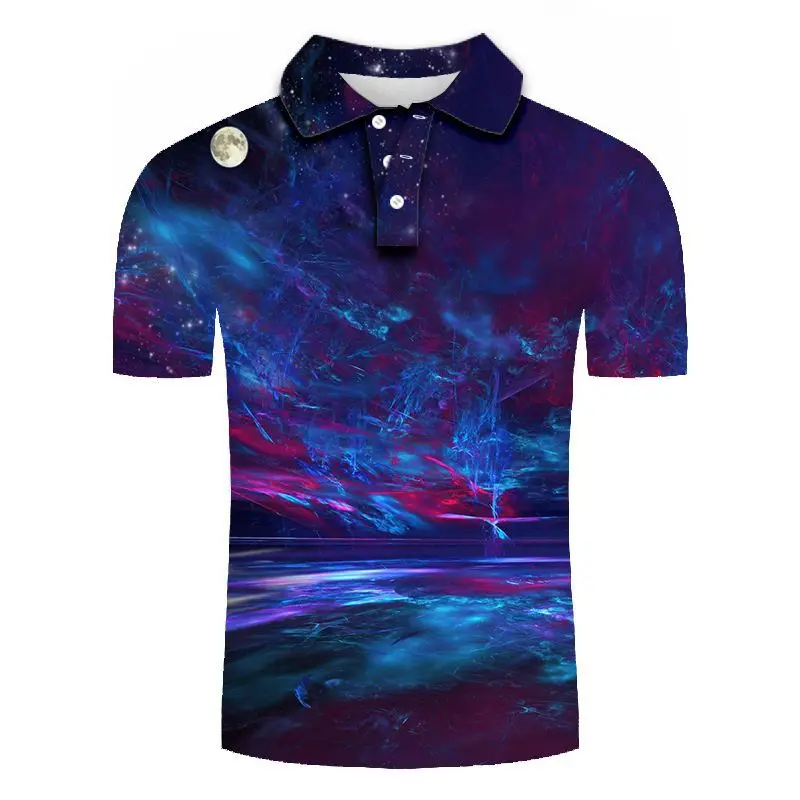 Рубашка-поло мужская быстросохнущая с коротким рукавом и 3D-принтом
