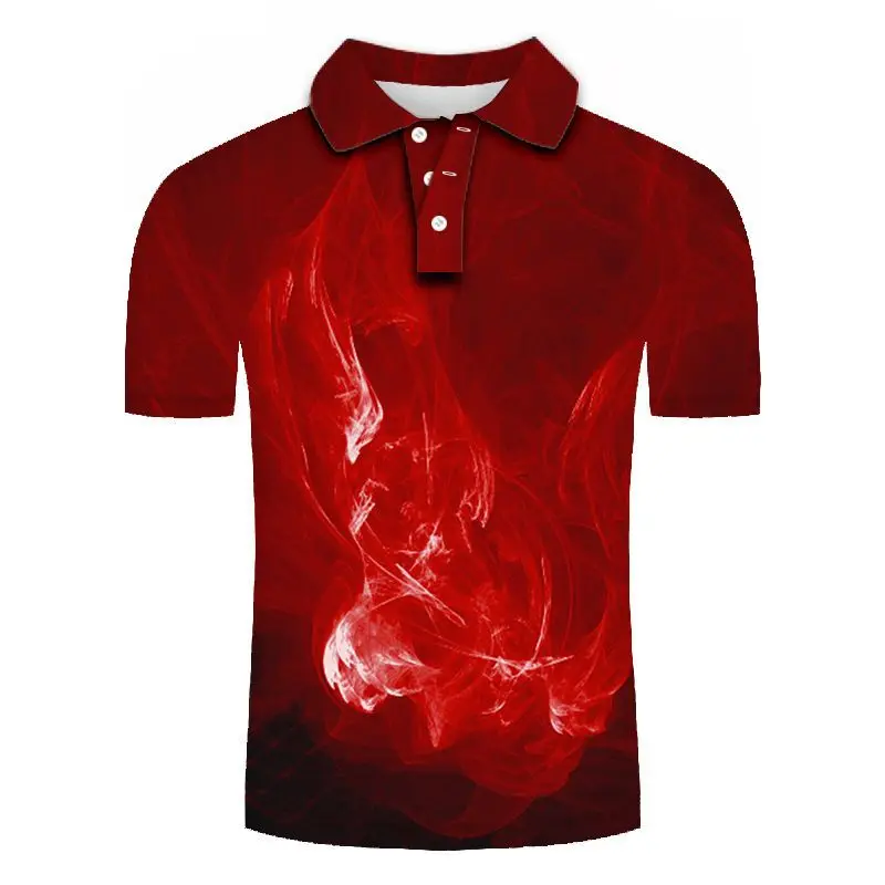 Мужская рубашка-поло с 3D-принтом пламени, крутая Повседневная модная одежда с коротким рукавом, летняя уличная одежда