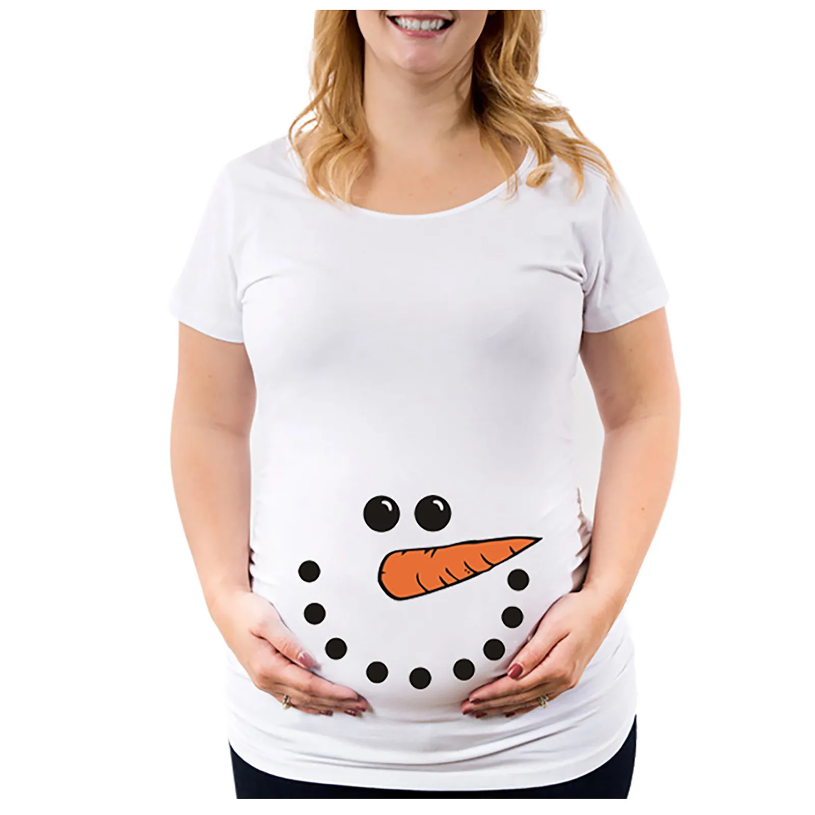 Лето 2021 платье для беременных модная повседневная футболка с мультяшным принтом и круглым вырезом однотонная свободная Удобная блузка для беременных # M