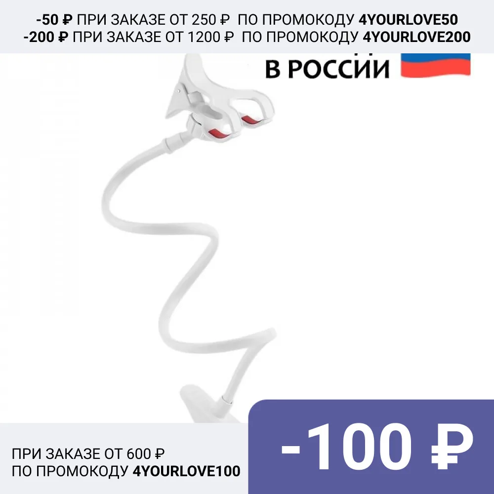 Гибкий держатель-прищепка для телефона с пластиковым зажимом для стола, белый