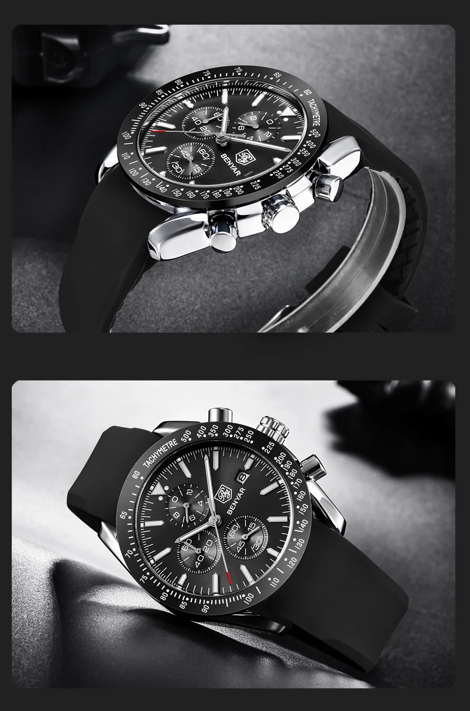 Часы BENYAR Мужские кварцевые в стиле милитари, брендовые Роскошные наручные, с ремешком из силикона и стали, с хронографом и кожаным ремешком