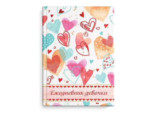 Ежедневник девочки арт. 49757 ЦВЕТНЫЕ СЕРДЕЧКИ, размер 110х147 мм, 64 л., твёрдый переплёт с поролоном, тиснение фольгой, глянцевая ламинация. Блок - белый офсет 65 г/м2, печать в одну краску.