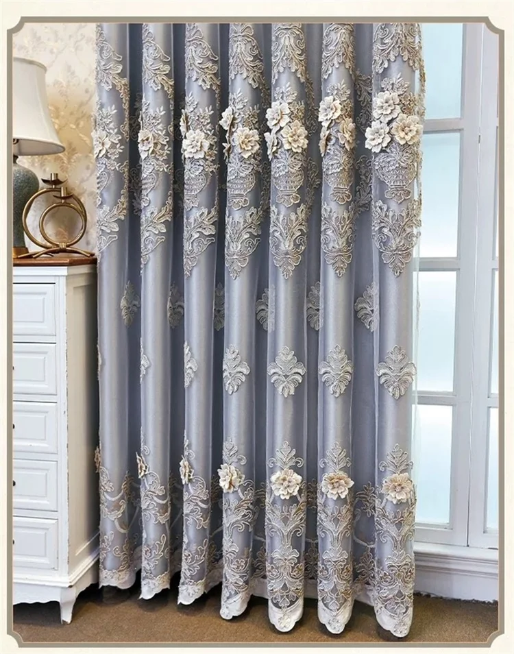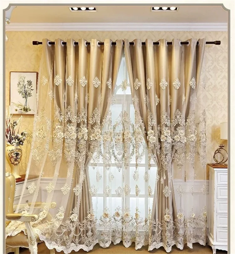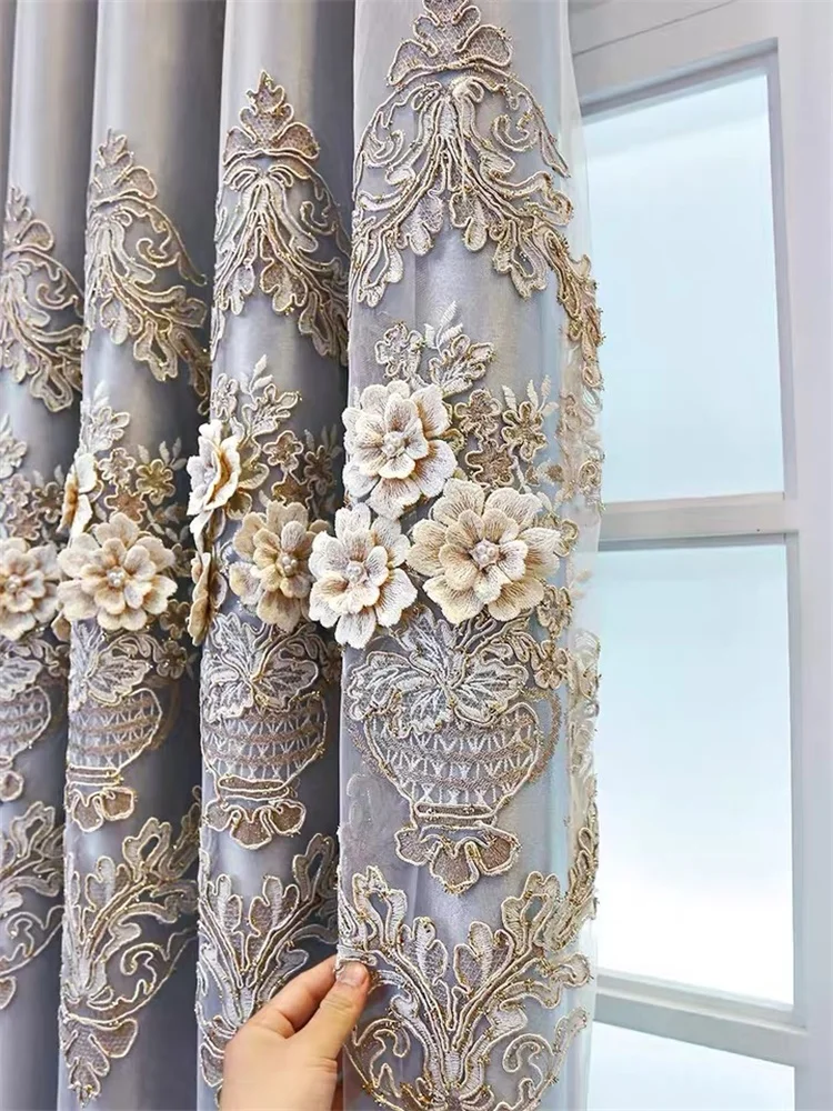 Европейские роскошные вышитые двухслойные полузатемняющие шторы, на заказ для гостиной и спальни, шторы с высокой степенью затенения