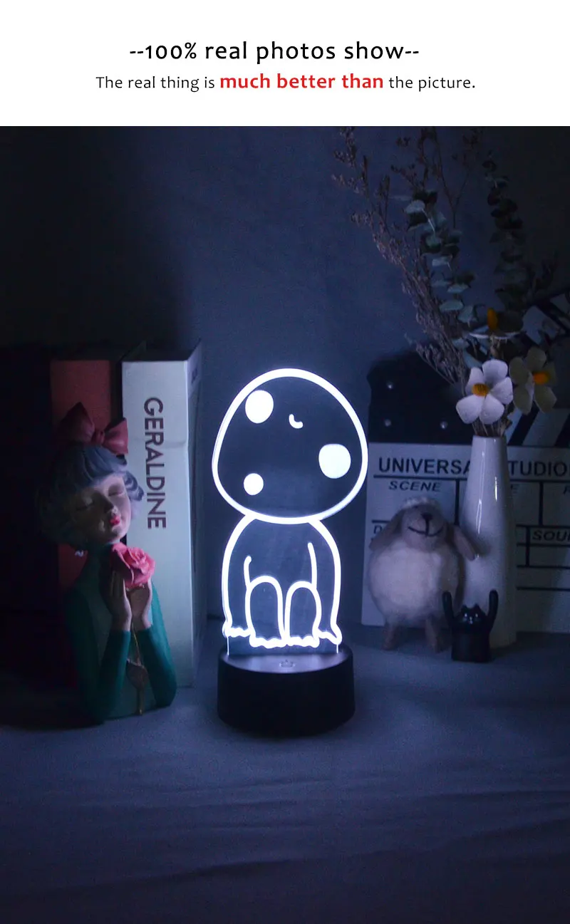 Аниме Принцесса Mononoke Hime фигурка Кодама 3D лампы светодиодные неоновые ночники прекрасные подарки RGB спальня прикроватный столик настольное украшение
