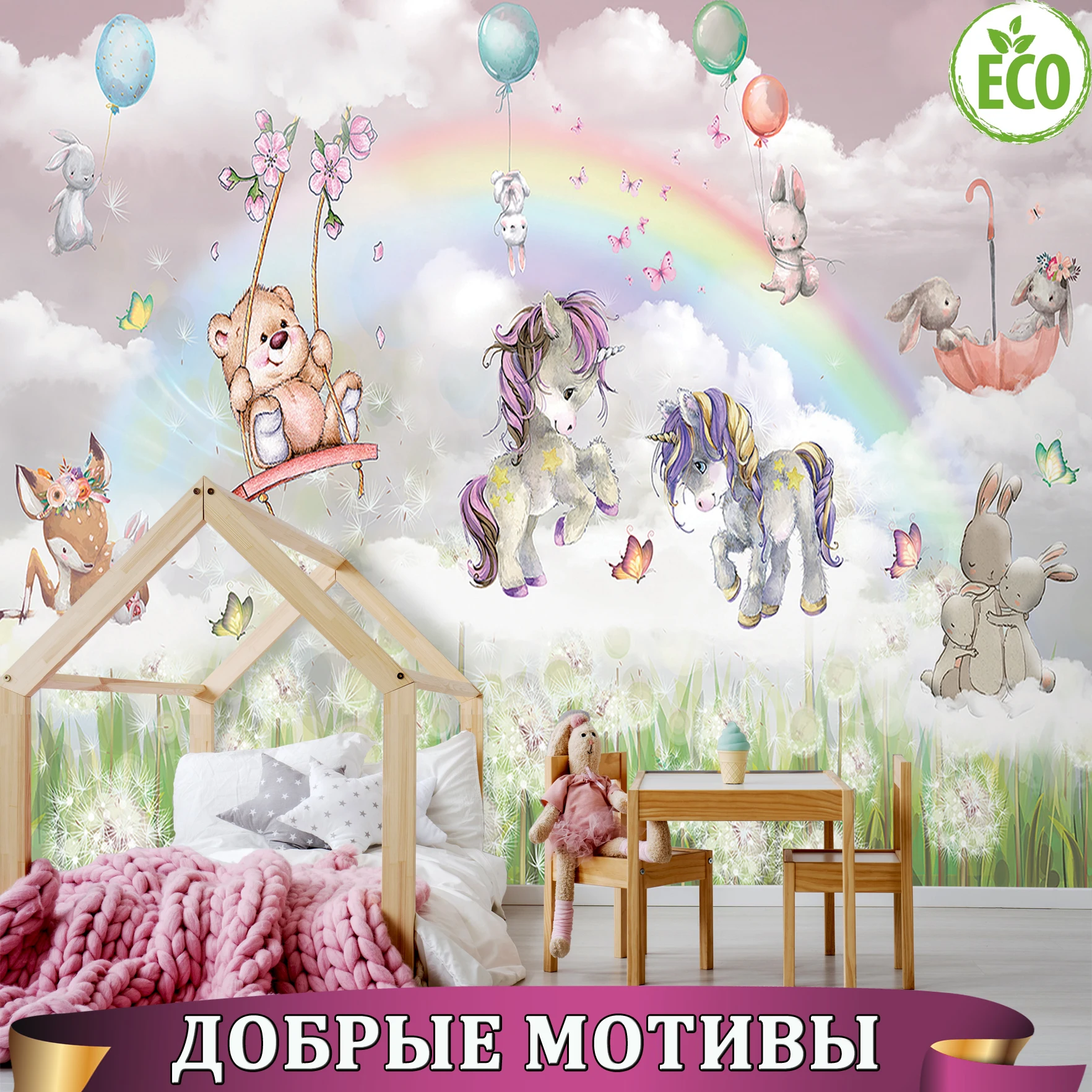 Фотообои Gallery Dekor обои детские Зверята на радуге флизелиновые панно на стену