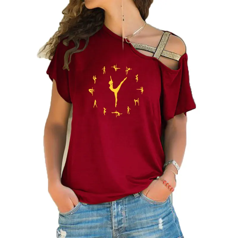 Женская футболка с принтом танцоры на шесте, откровенная футболка для стриптиза, женская футболка с асимметричным скошенным перекрестным поясом