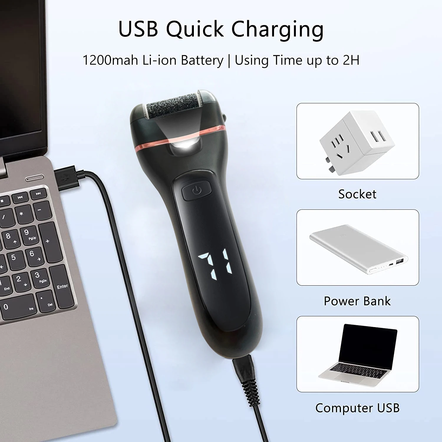 Перезаряжаемая электрическая пилка для ног, аппарат для удаления мозолей, педикюрное устройство, инструменты для ухода за ногами, пилка для ног на каблуках, удаление омертвевшей кожи, черный