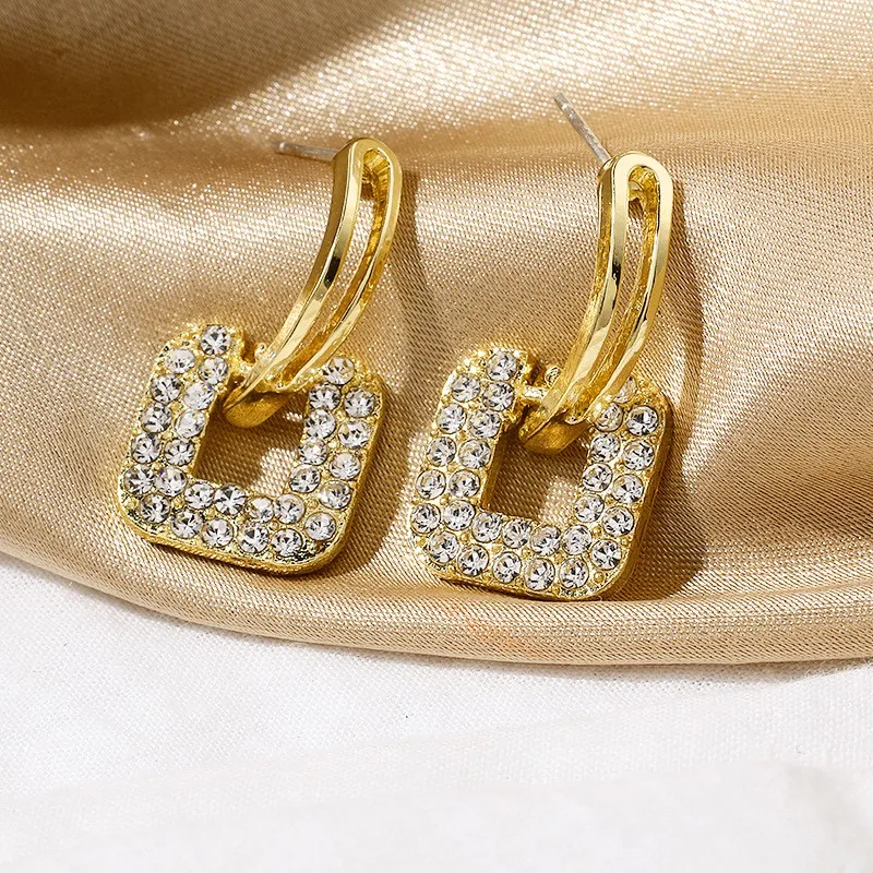 S925 наборе серебристых спиц, можно регулировать длину модные уха пряжки темперамент моды серьги геометрической формы квадратные стразы серьги ювелирные изделия из жемчуга