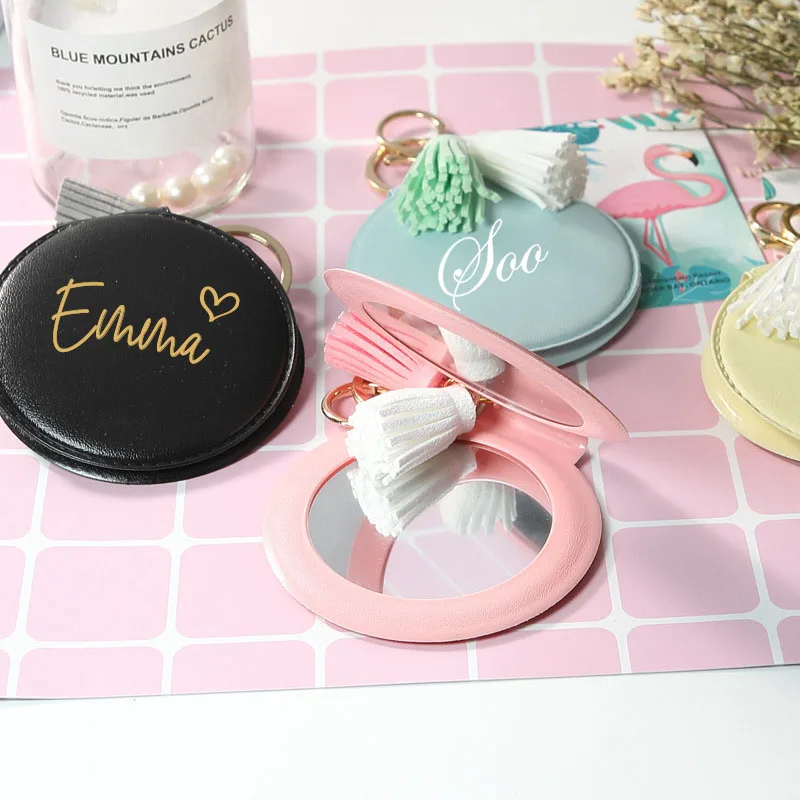 Индивидуальный кожаный компактный брелок с зеркальной подвеской для невесты подружки невесты девушки девичника Рождественский подарок