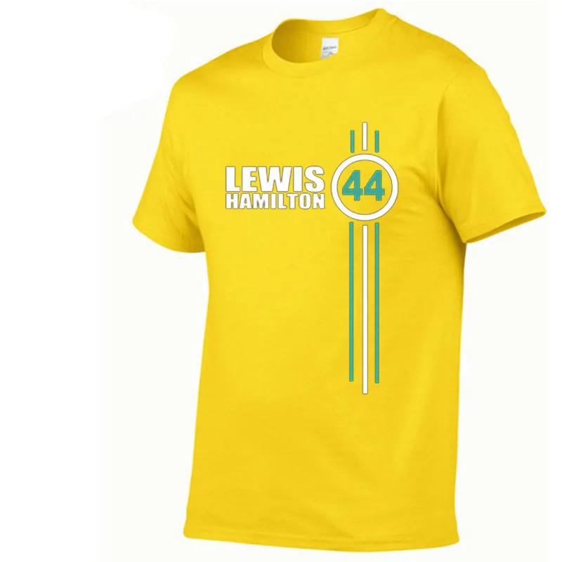 Футболка мужская с коротким рукавом, простая стильная рубашка, 44 дюйма, для водителя, Льюиса, Гамильтона, хлопковая, для фанатов автомобиля