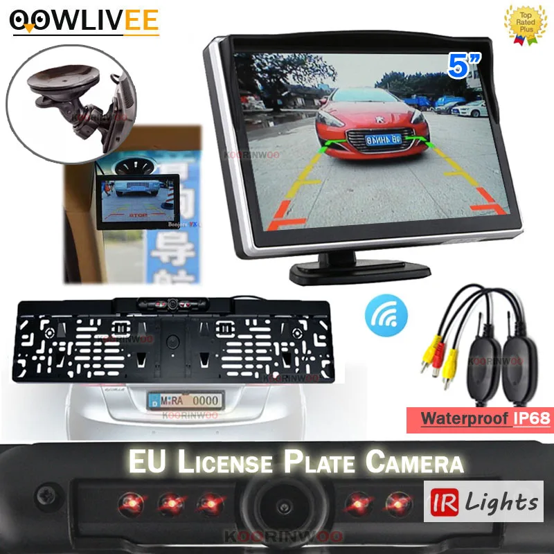 OOWLIVEE ЕС беспроводная ИК Лицензионная рамка для автомобилей номерной знак Автомобильная камера заднего вида монитор окно для GolfWVBMWSkodaToyota все
