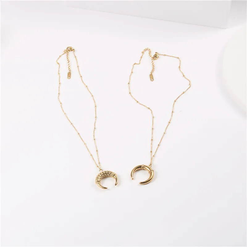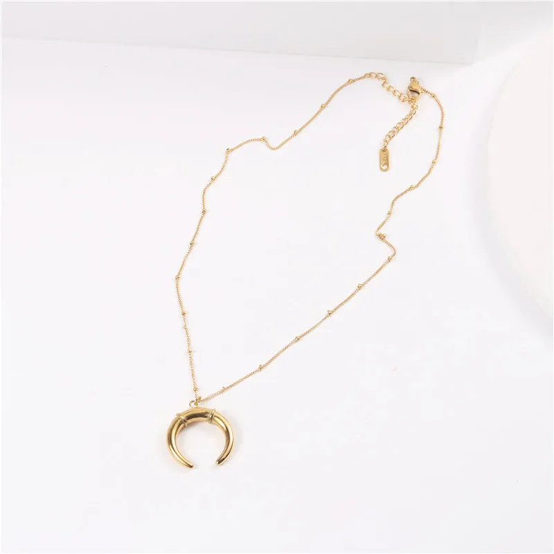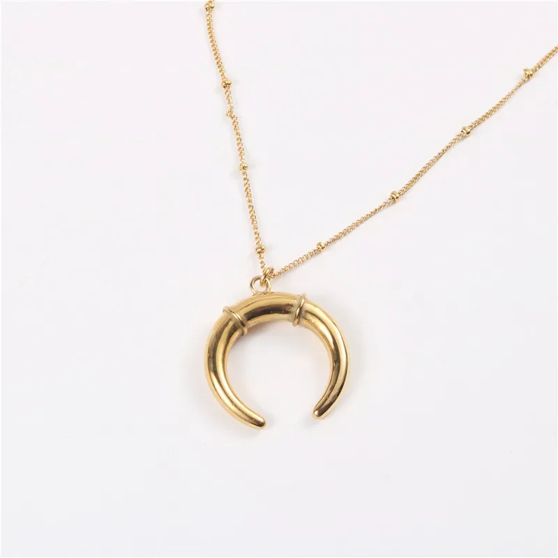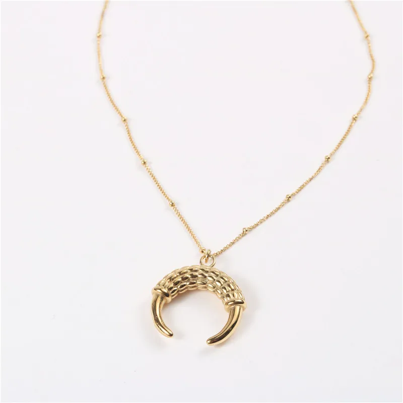 Joolim ювелирные изделия PVD позолоченная отделка модное ожерелье с подвеской в виде рога и Луны Стильное ожерелье из нержавеющей стали