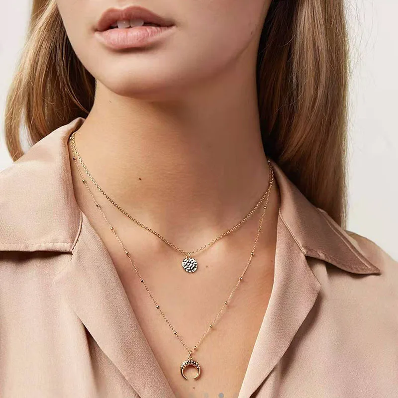 2021 цепи ожерелье Многослойные Луна медный металлический Серебряны...