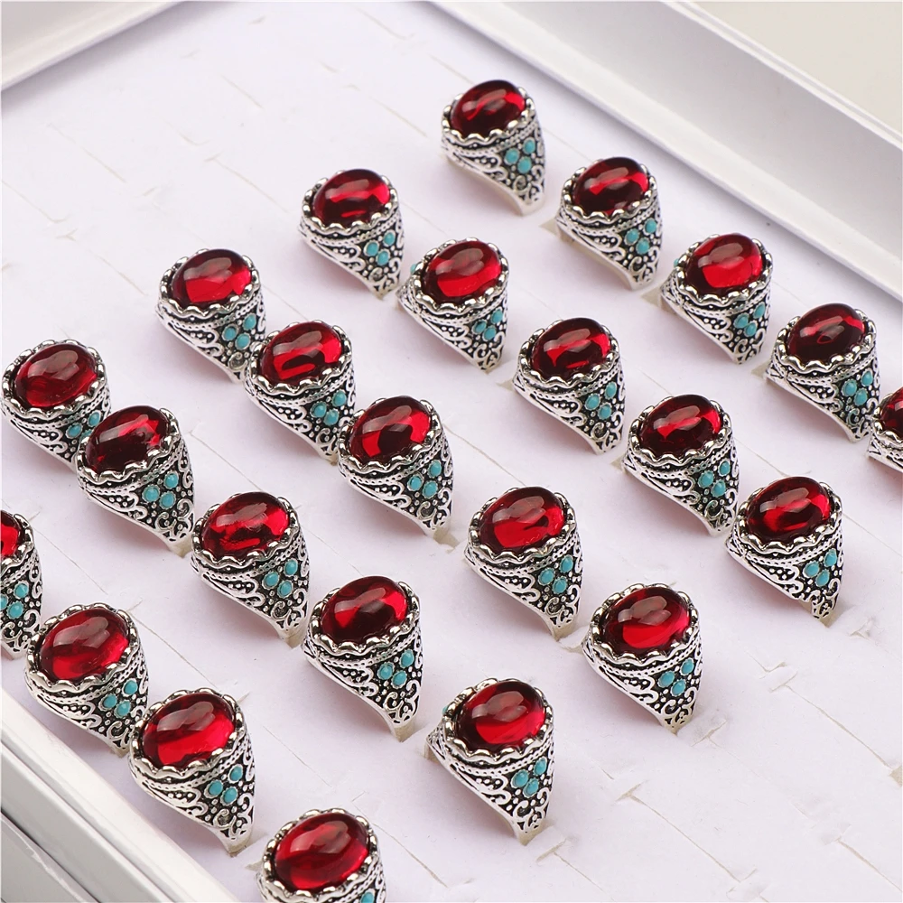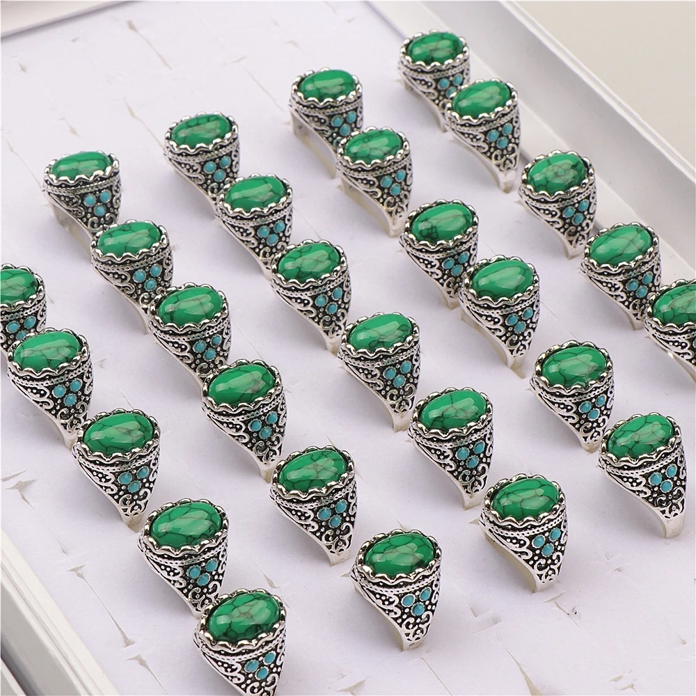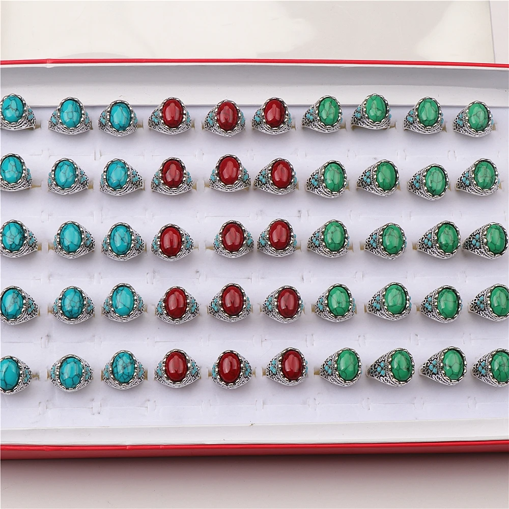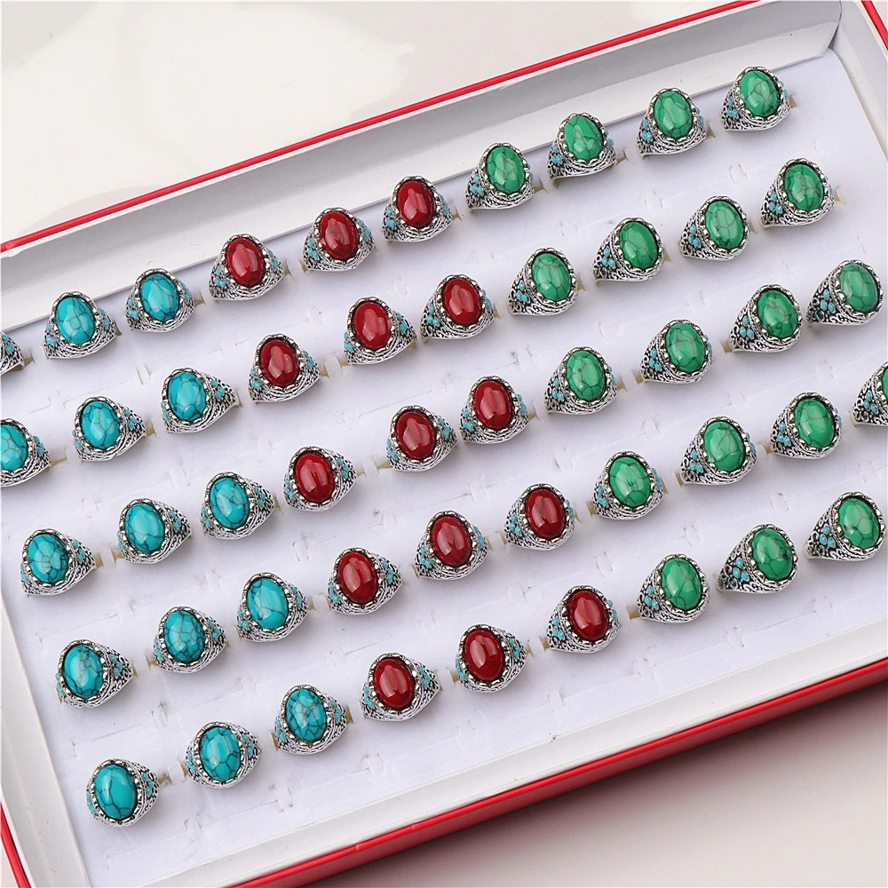 20 шт.лот винтажные разноцветные бирюзовые металлические кольца с натуральным камнем античного серебра для женщин ювелирные изделия для свадебвечерние подарки