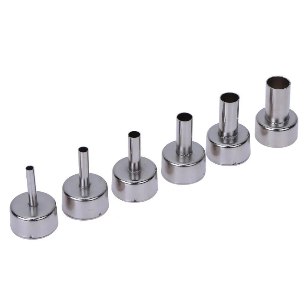 6 шт., насадки тепловой пушки для паяльной станции горячим воздухом 3-12 мм, серебристые
