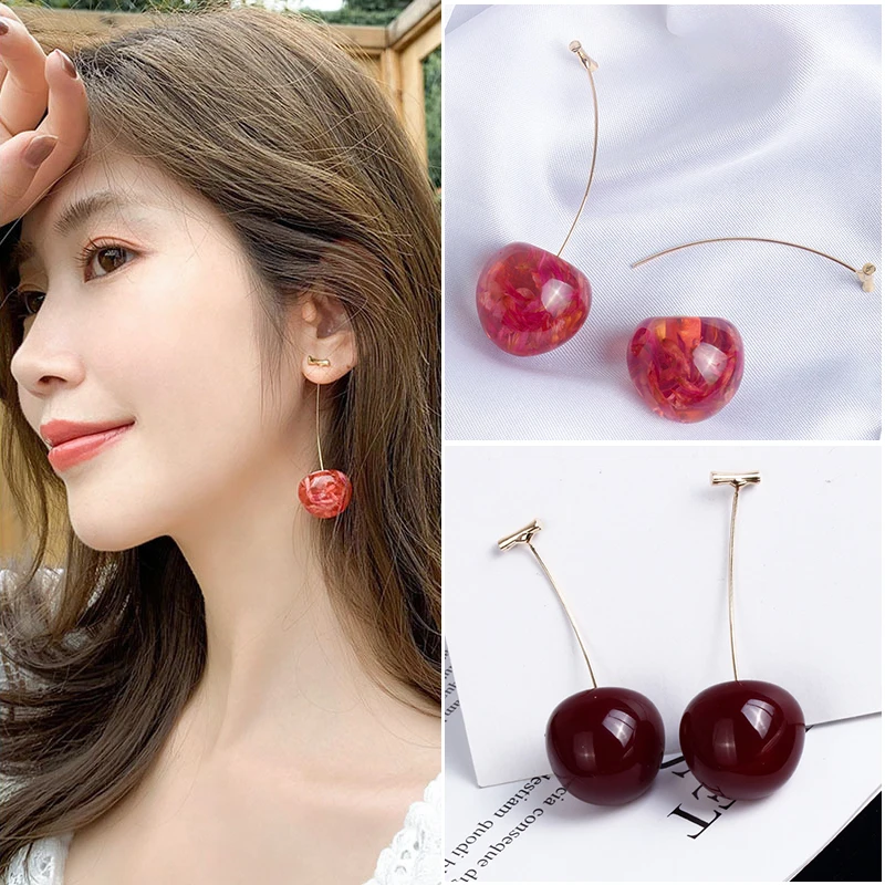 Серьги-подвески в виде сушеных цветов, вишни, полимерные серьги в форме вишни, розовые вишни, женские индивидуальные украшения вечерние Ринок