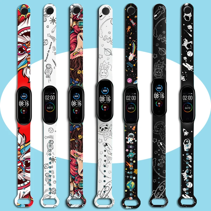 Ремешок силиконовый для Xiaomi Mi Band 5 6, сменный спортивный браслет в стиле граффити для Xiomi Mi Band 4 3