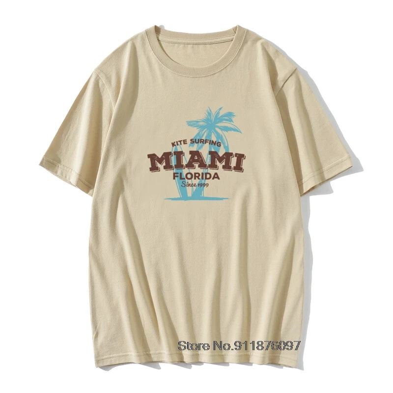 Летняя мужская футболка 2021 Майами Флорида, топы в стиле ретро с кайтом, принтом дерева, футболки, стильная Винтажная футболка с коротким рукавом