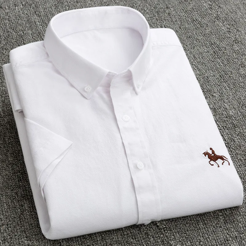 Качественные летние 100% хлопок оксфордская рубашка мужская футболка с коротким рукавом с вышивкой лошади повседневные однотонные мужские нарядные рубашки размера плюс 5XL 6XL