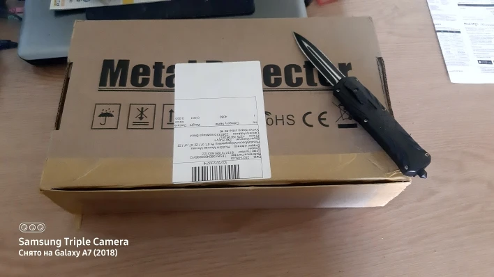Доставка за неделю, в пятерочку. упаковка немного помята но всё целое. В работе немного проверил на даче всё норм, по воздуху монеты и гвозди видит на 20-30 см. молоток на 40 см. пин пад работает. В земле не проверял пока