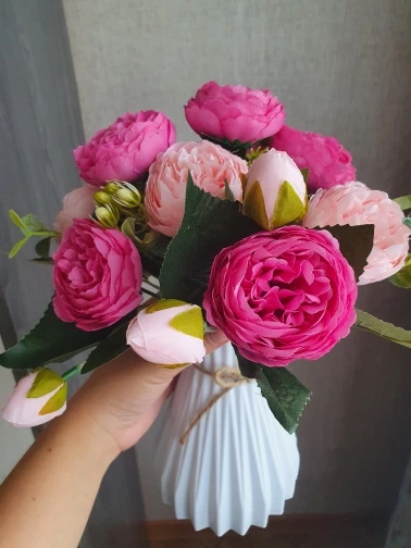 сама по себе невзрачная и маленькая, а как только поставила в неё цветы стала красивой