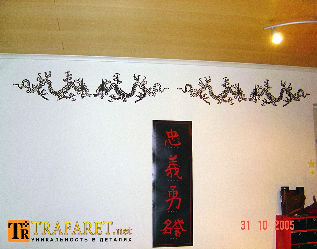 Трафареты драконов - очень популярная тема. На этом трафарете - извивающийся ползущий вверх по стене. Настоящий многоразовый трафарет из пластика (майлар) для многократного использования с любыми типами краски. Легко пользоваться даже начинающему или ребенку. Тонкий прозрачный пластик позволяет рисовать на любых поверхностях. В комплекте с трафаретом поставляется инструкция по правильной технике трафаретного рисунка. Трафарет большого размера для удобства разделен на несколько частей, совмещающихся друг с другом в точности по отдельным элементам или меткам.