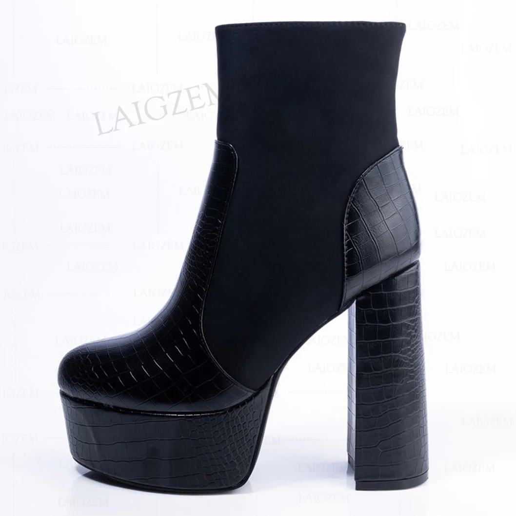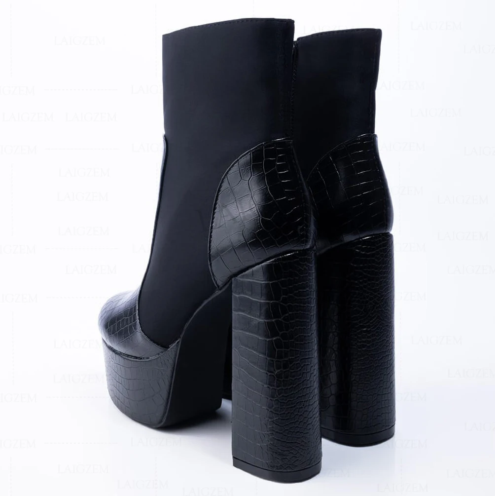 Женские ботильоны на платформе DOHBANER, черные Лоскутные ботинки на толстом каблуке, ботинки больших размеров 38, 43