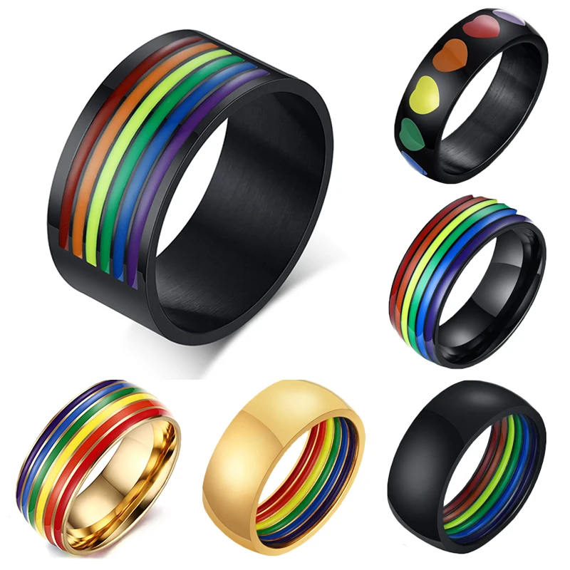 Для мужчин и женщин, радуга, гей кольцо красочный Радужный Флаг ЛГБТ гомосексуальная пара колец из нержавеющей стали, обручальное кольцо, Lebian гей кольца Перевозка груза падения