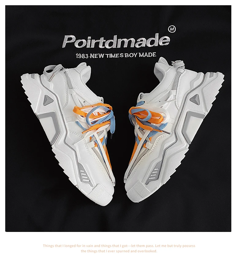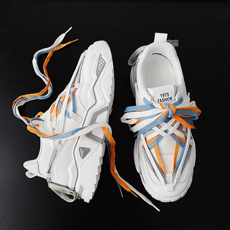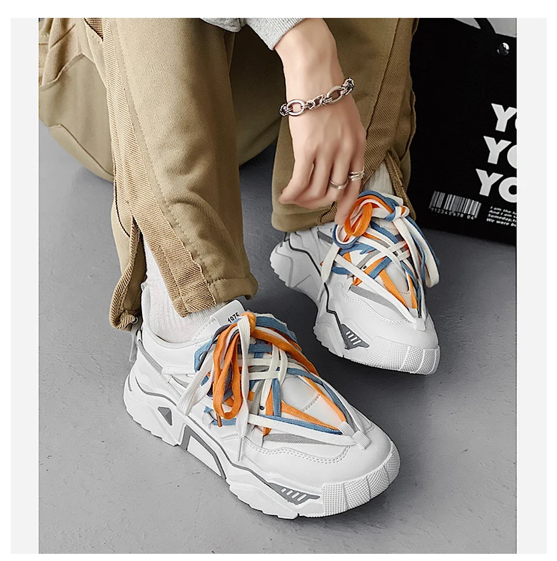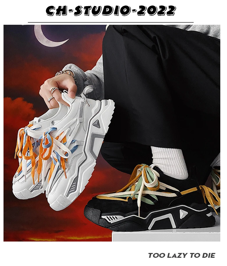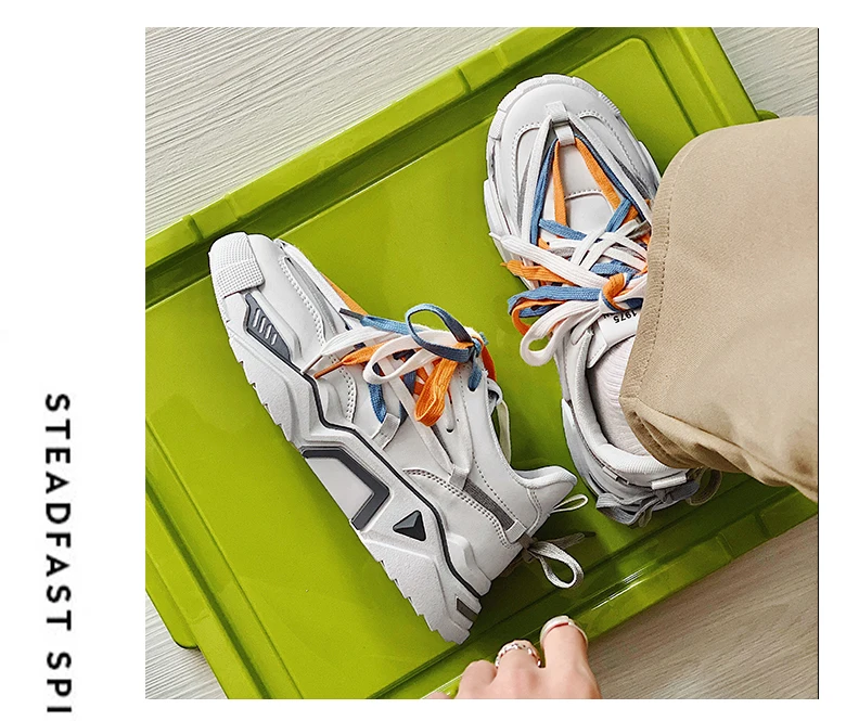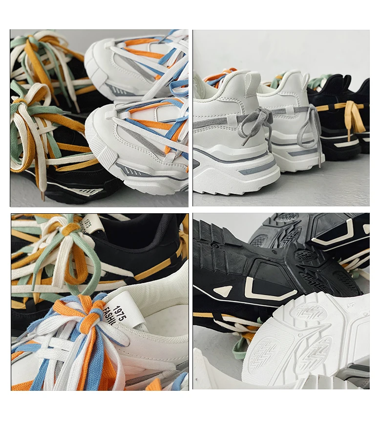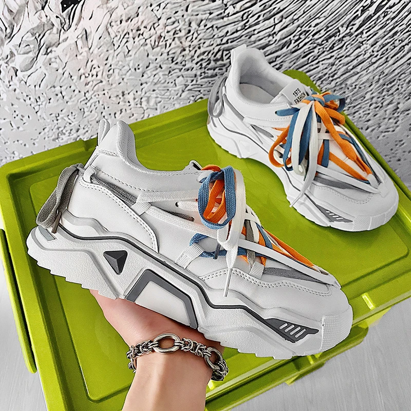 Кроссовки мужские из ПУ кожи, повседневная обувь на платформе, толстая подошва, круглый носок, смешанные цвета, весна