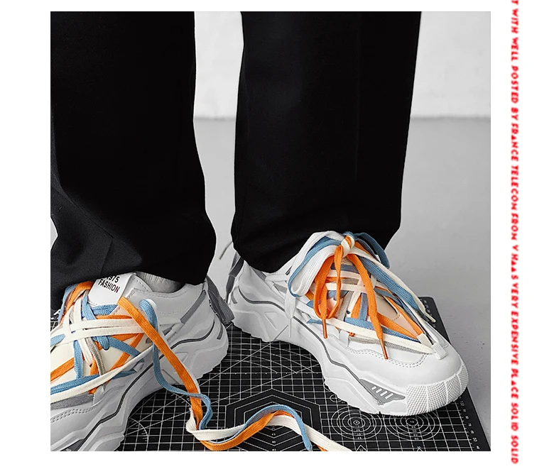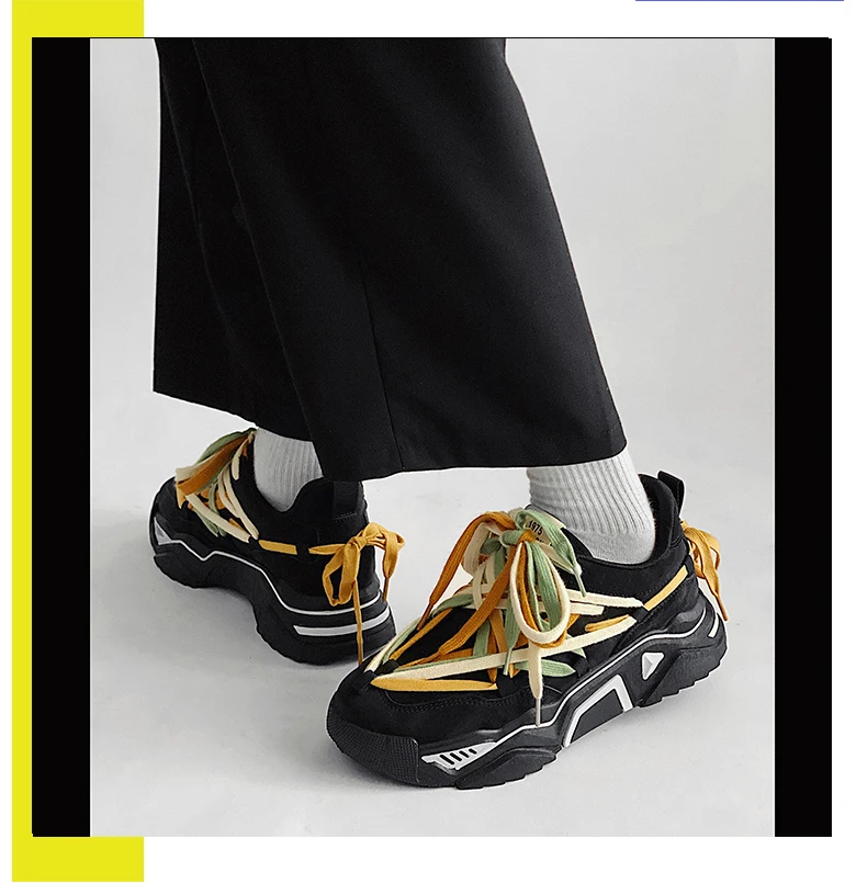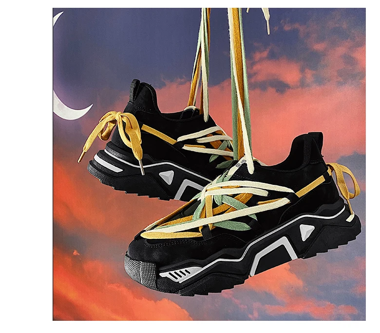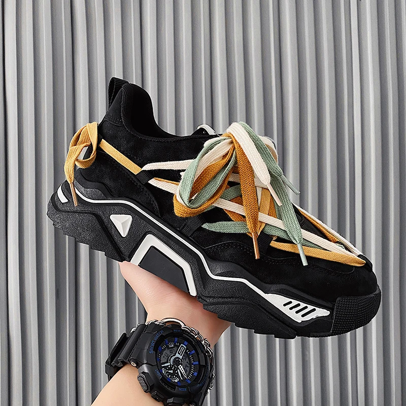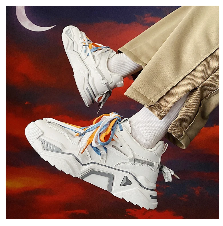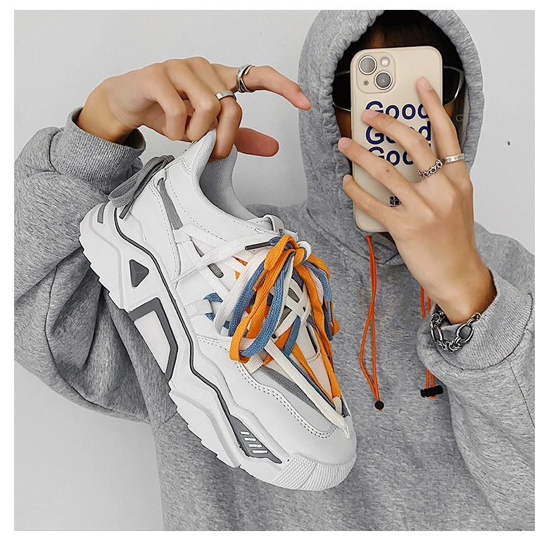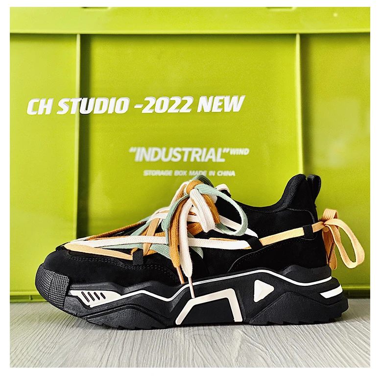Кроссовки мужские из ПУ кожи, повседневная обувь на платформе, толстая подошва, круглый носок, смешанные цвета, весна