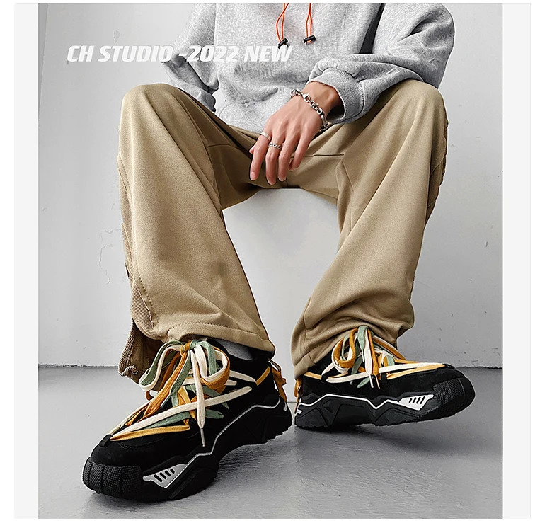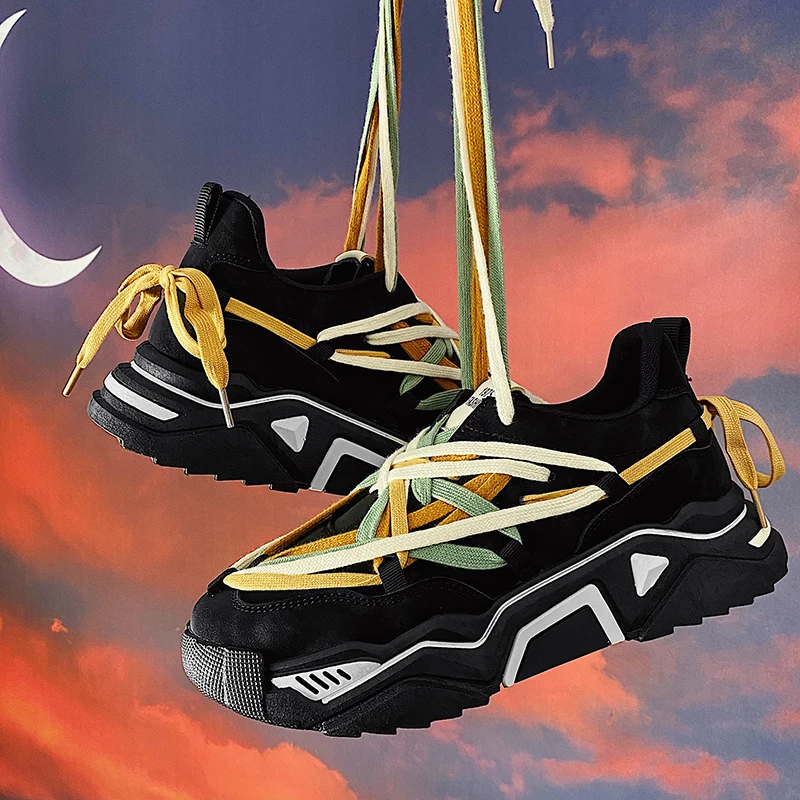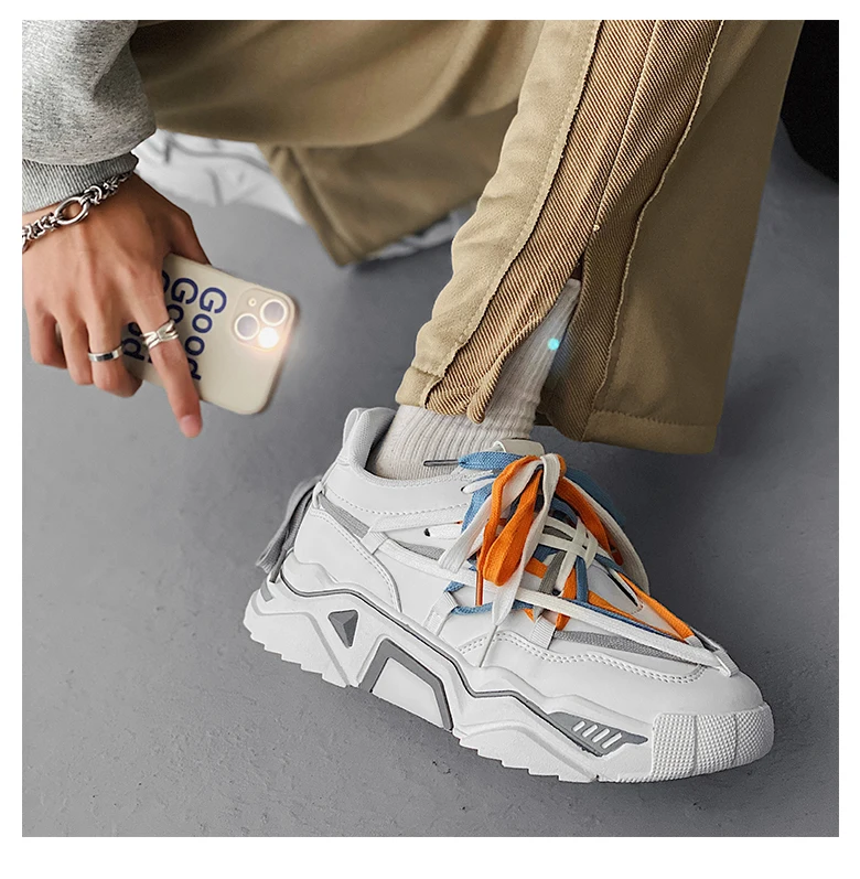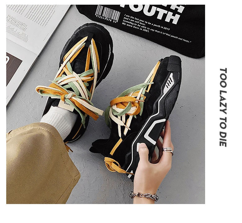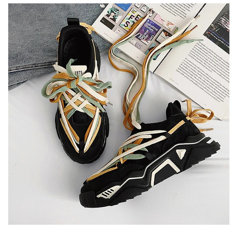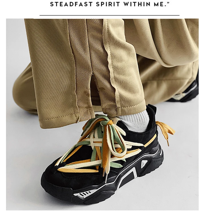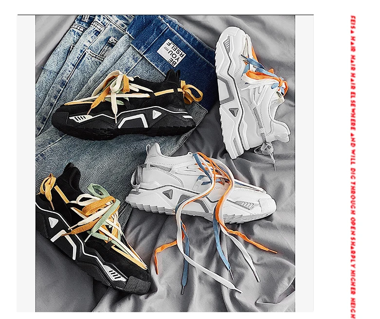 Кроссовки мужские из ПУ кожи, повседневная обувь на платформе, толстая подошва, круглый носок, смешанные цвета, весна