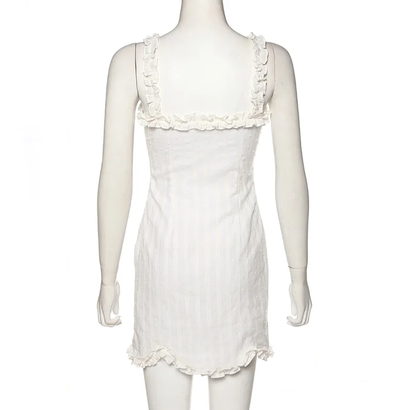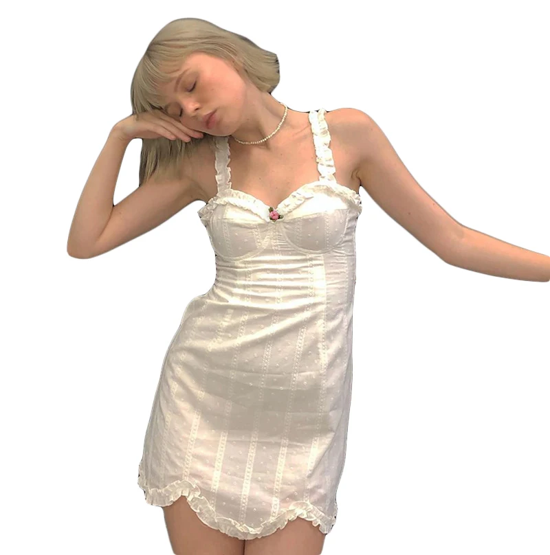 Милое Белое Мини-Платье MyErato Kawaii Y2k, милая одежда с оборками по бокам, фея, гранж, праздвечерние одежда для ночного клуба, пляжная одежда