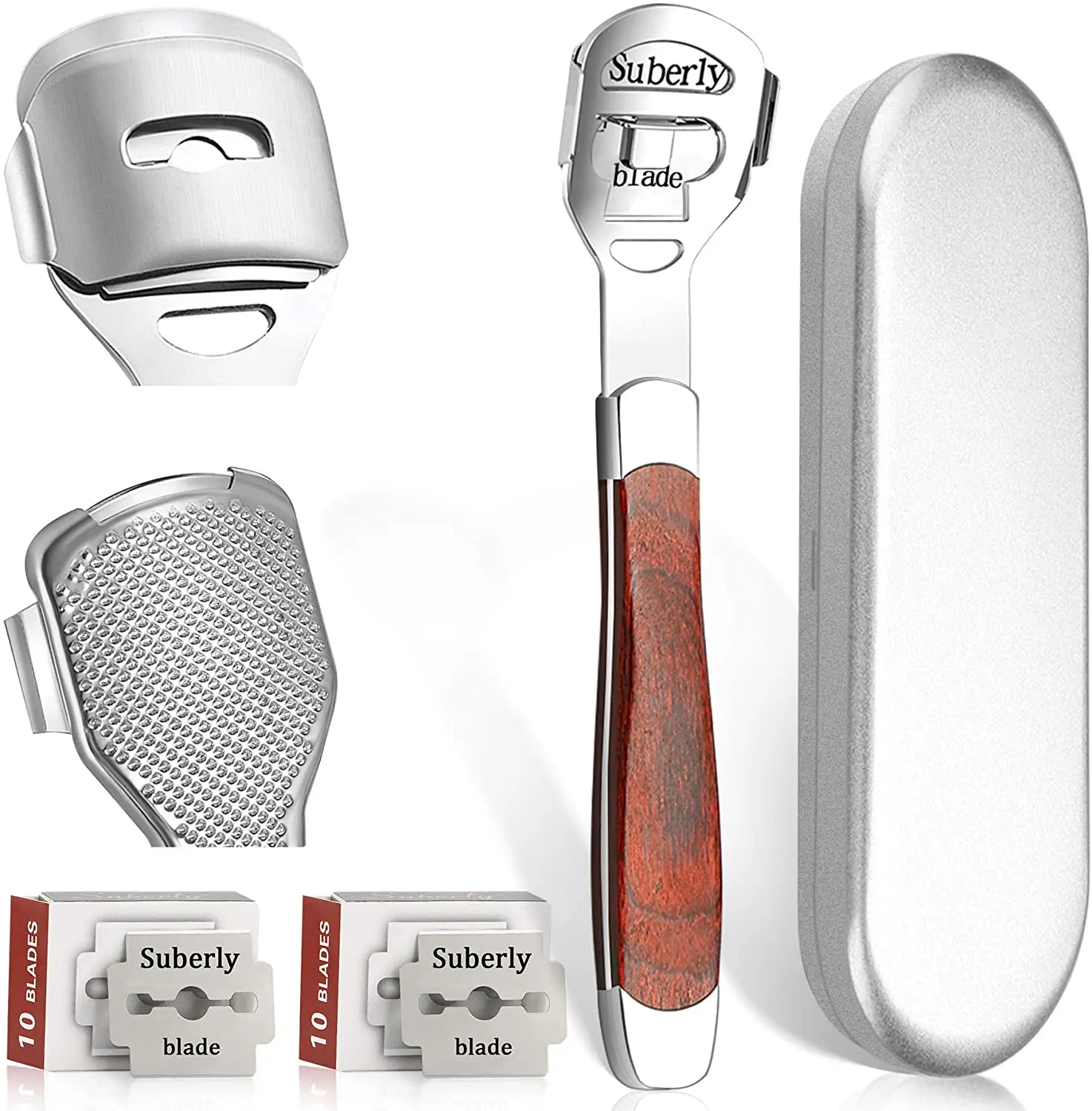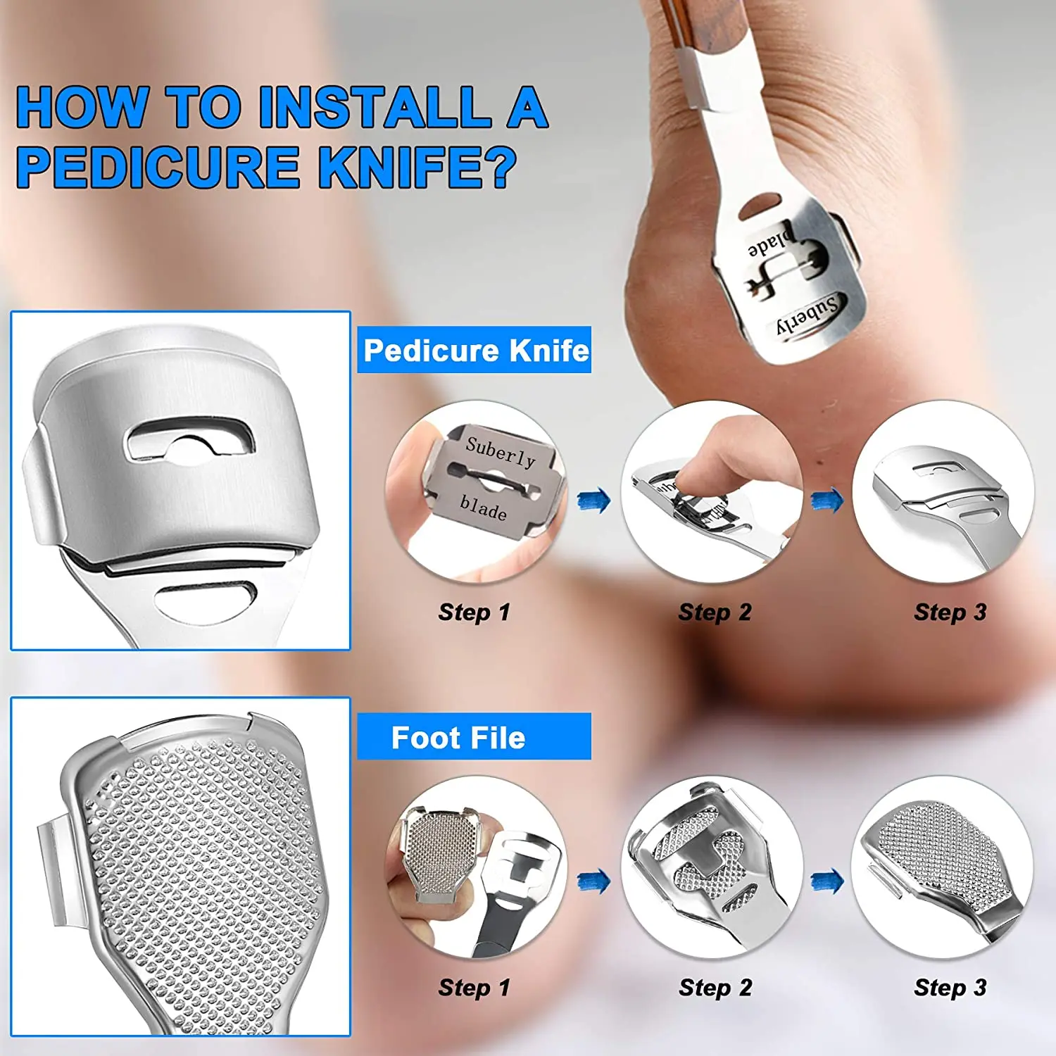 Нержавеющаясталь ручка педикюр бритвы электрической шлифовальной пилки для ног Уход Жесткий щётка от шерсти с Чехол 20 Сменное лезвие педикюр инструменты