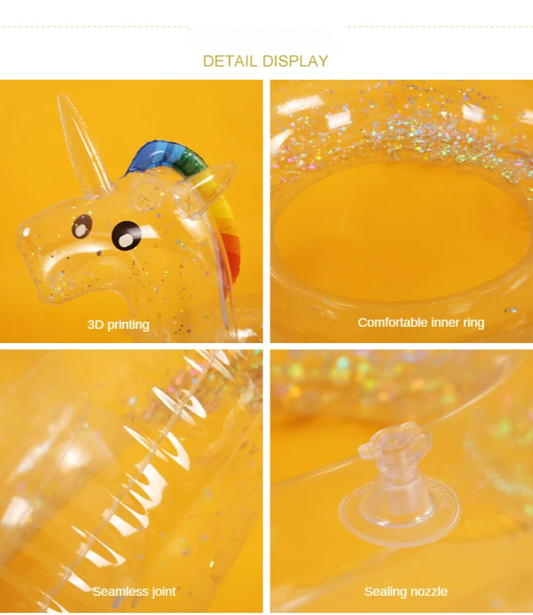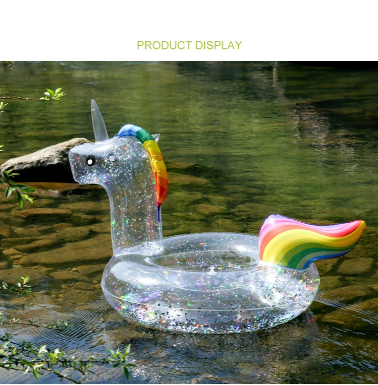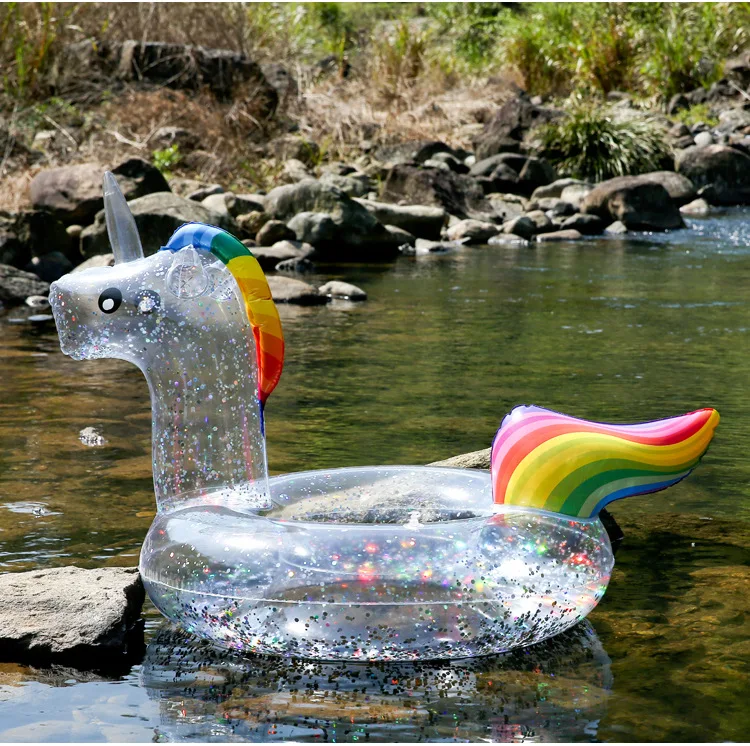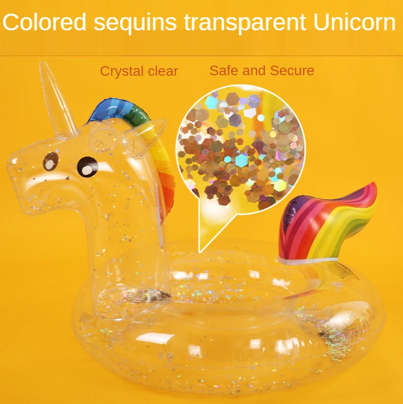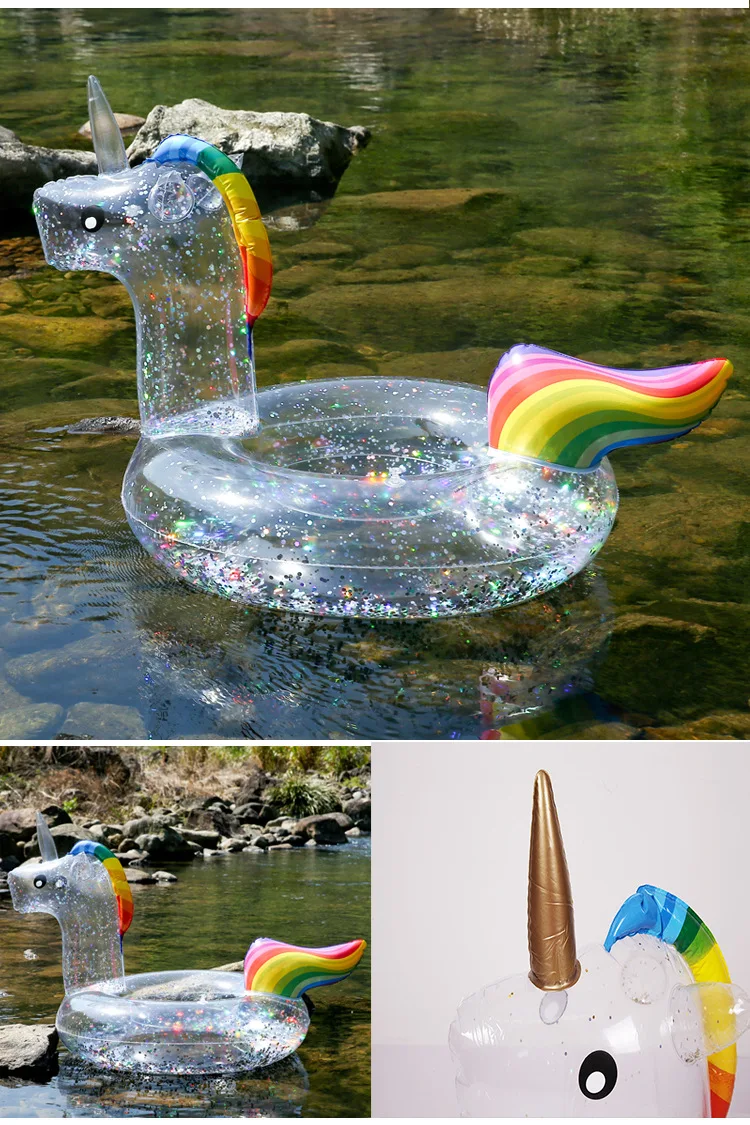 Прозрачное Надувное плавательное кольцо, фламинго, единорог, летняя плявечерние, игрушки для бассейна, матрас, блестящее плавающее сиденье, аксессуары