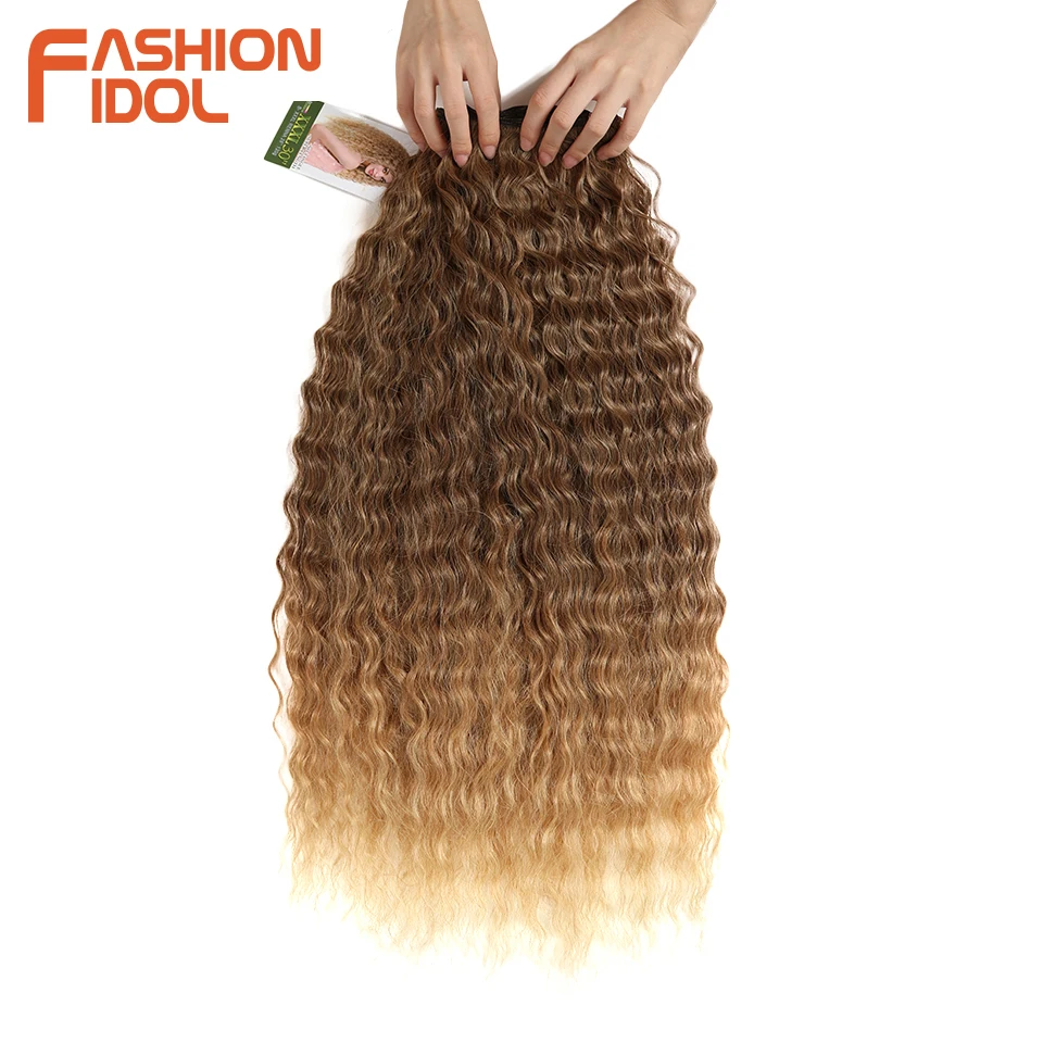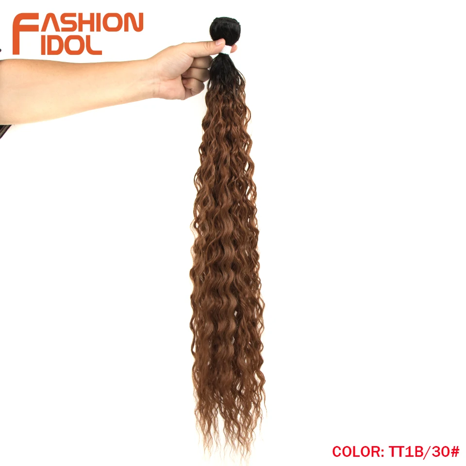 Модные кудрявые вьющиеся волосы для наращивания, пучки каштановых волос с эффектом омбре, 28-32 дюйма, супер длинные волосы, синтетические волнистые волосы