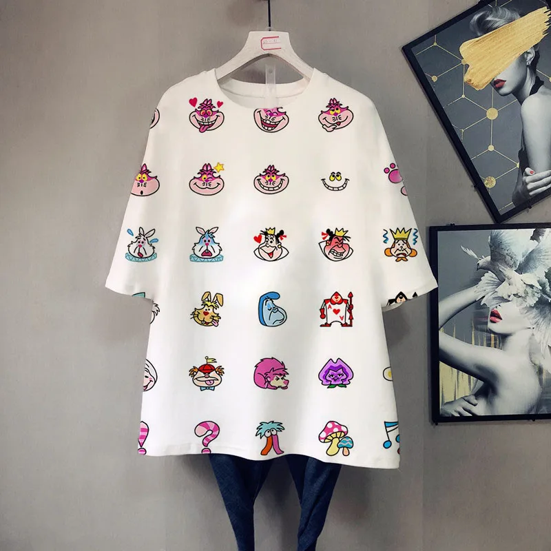 Футболка женская в стиле Алиса в стране чудес, повседневный топ с к...