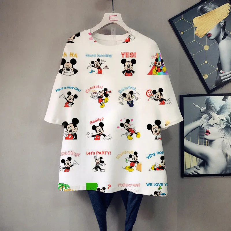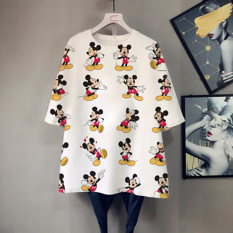 Женская летняя футболка с круглым вырезом и принтом Микки Мауса
