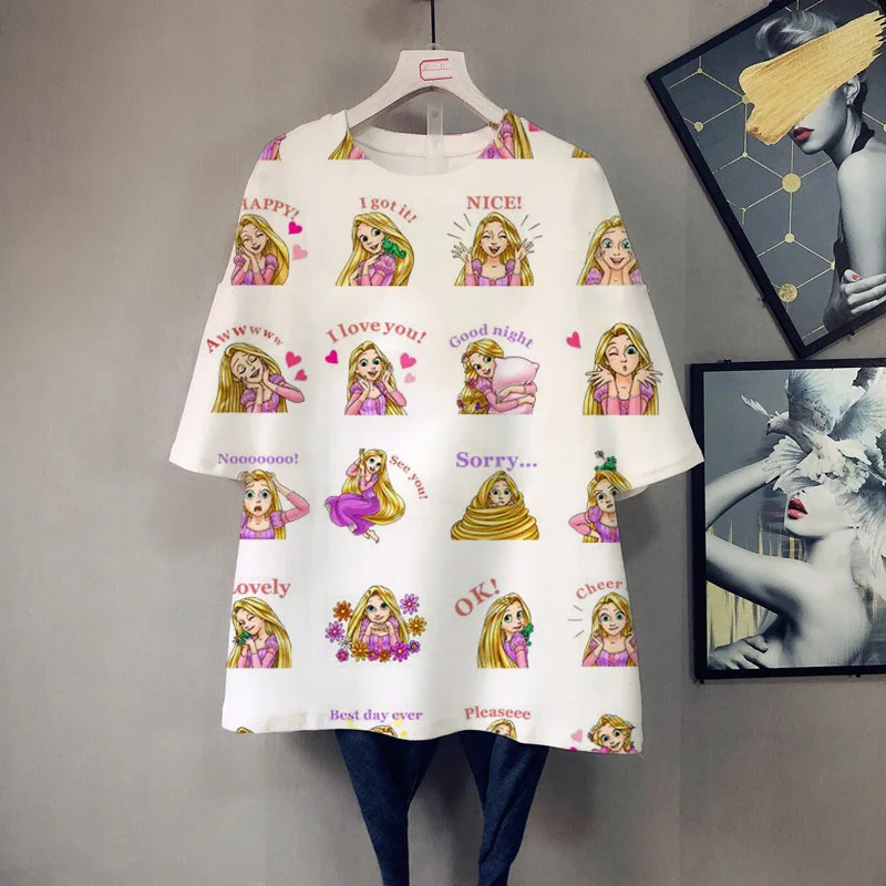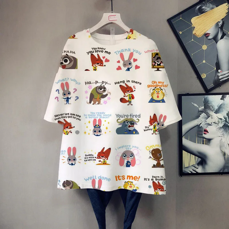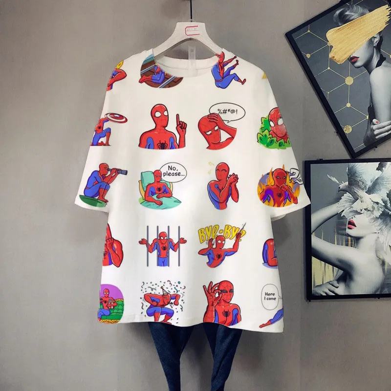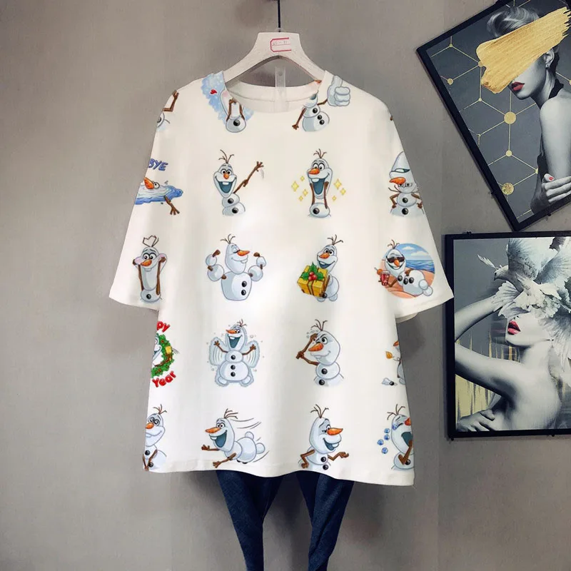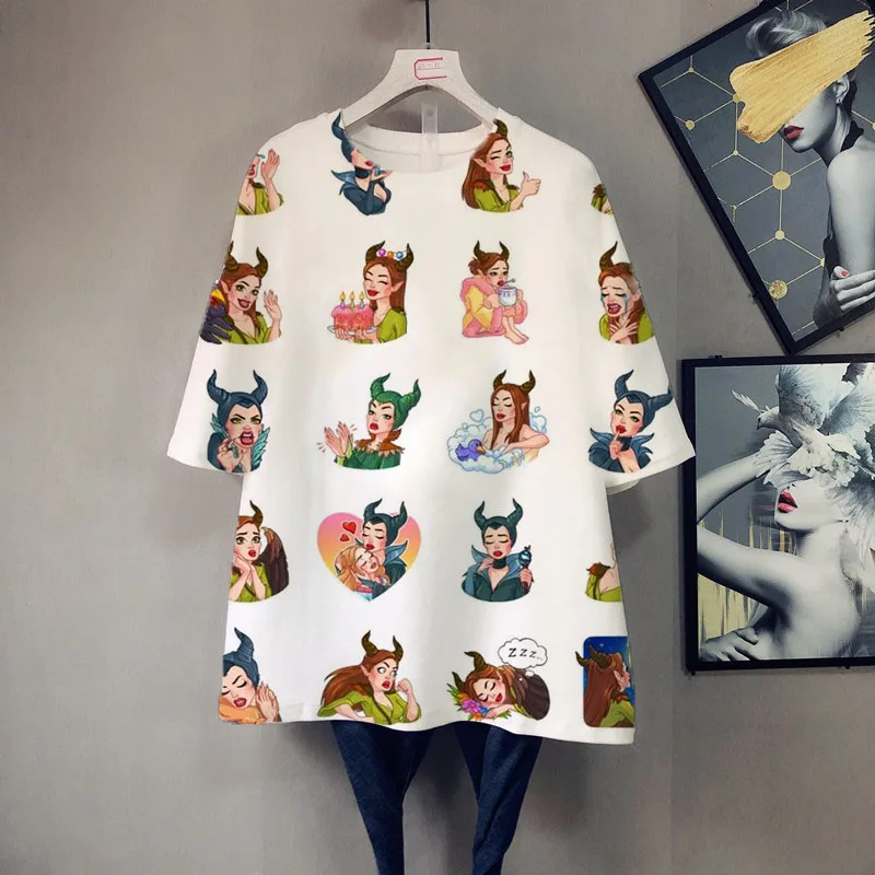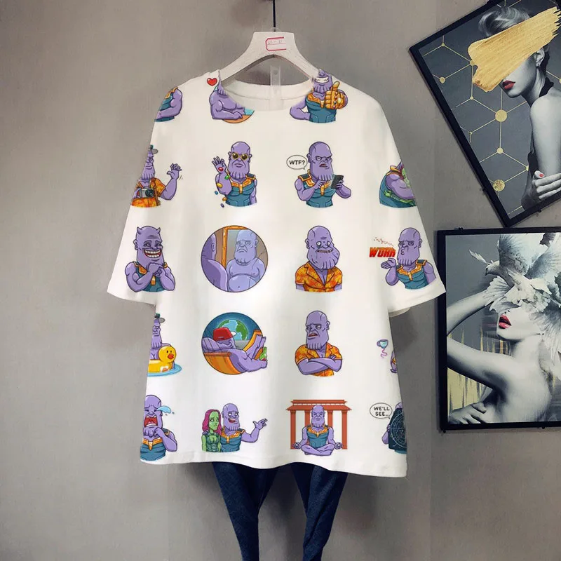Футболка женская летняя большого размера с коротким рукавом, мультя...