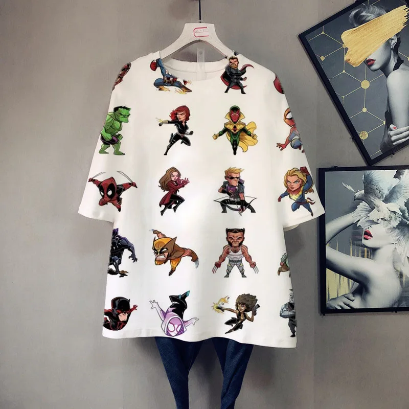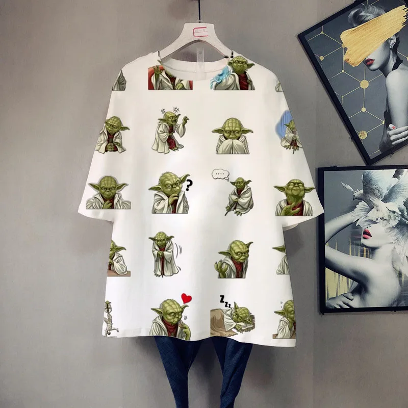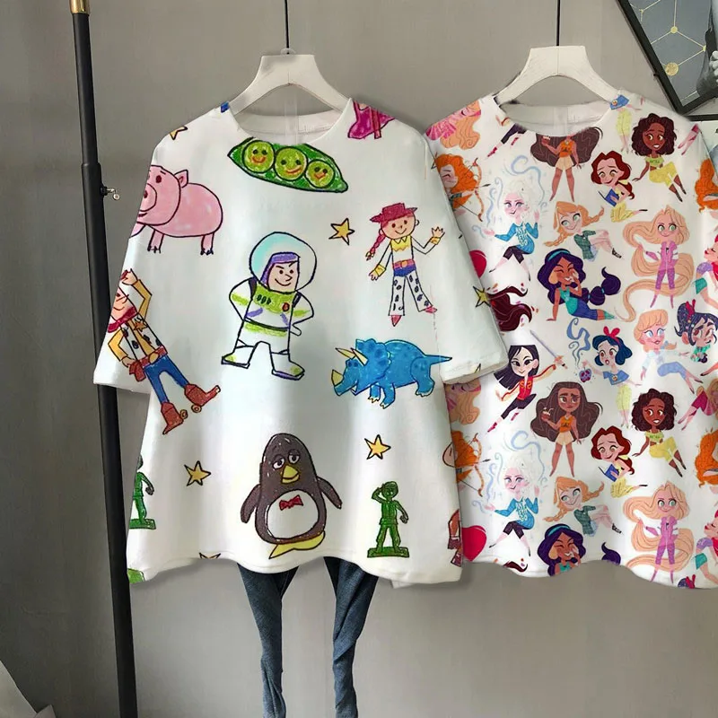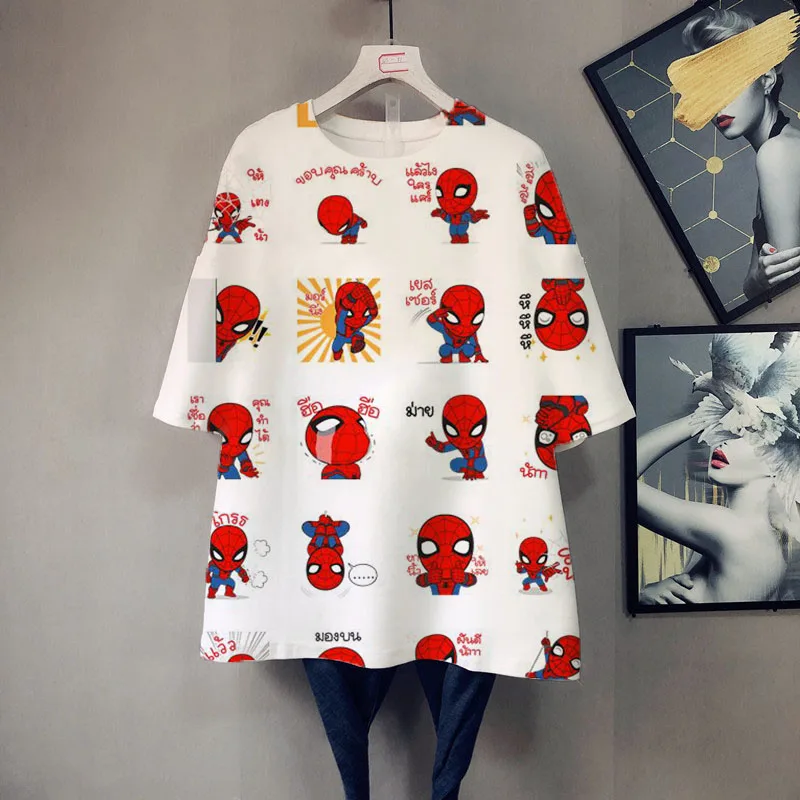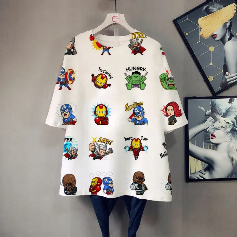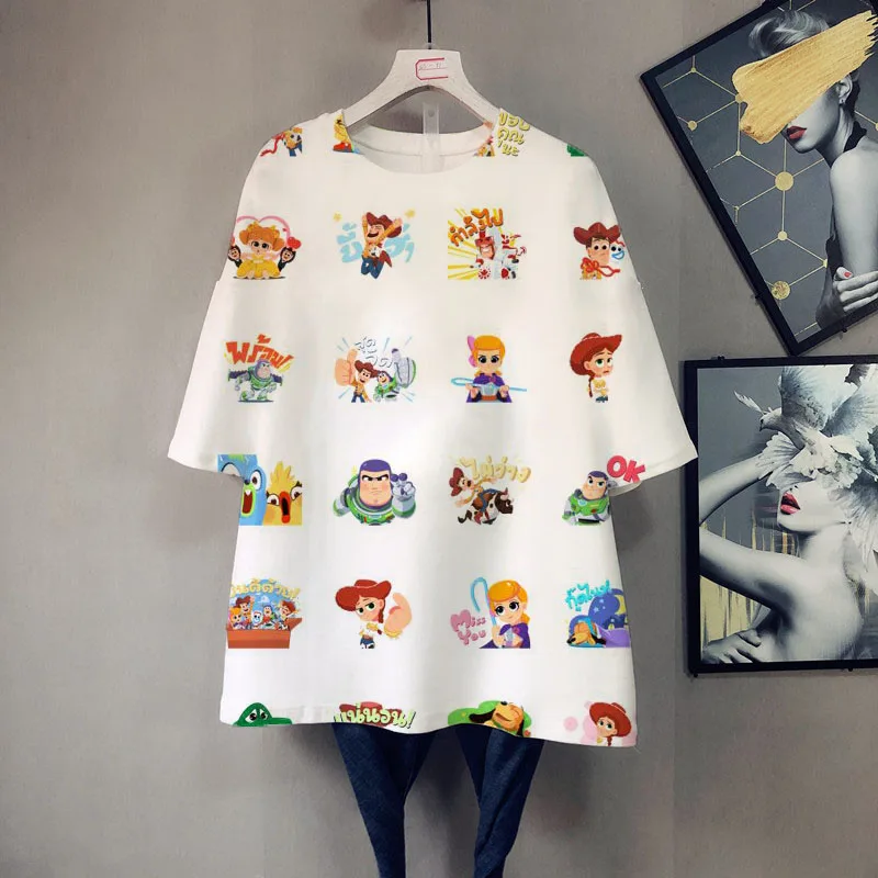 Футболка женская летняя большого размера с коротким рукавом, мультя...