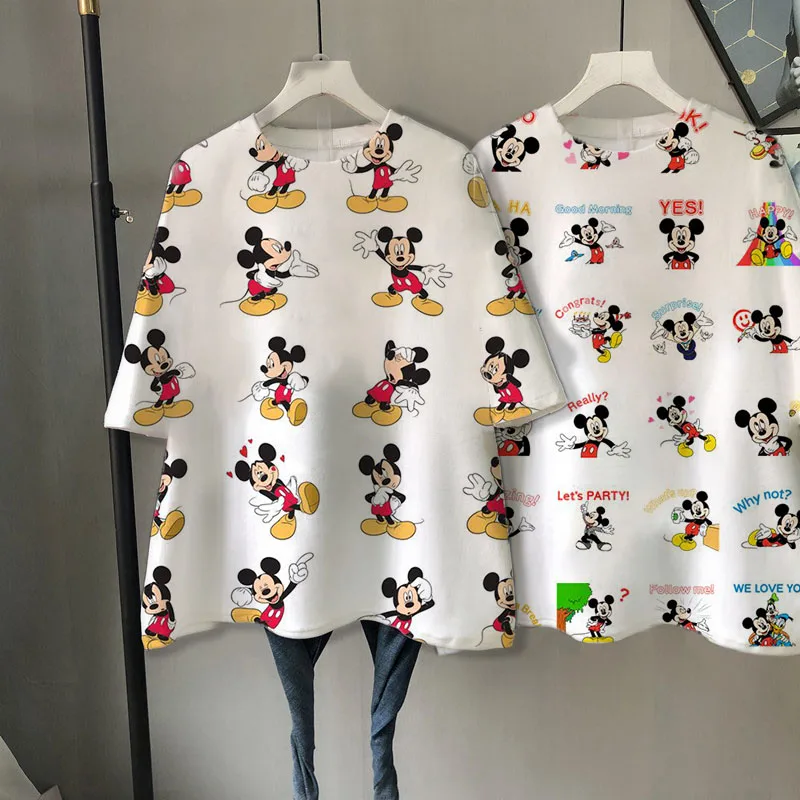 Летняя женская футболка Disney с Микки Маусом, Женская свободная ле...