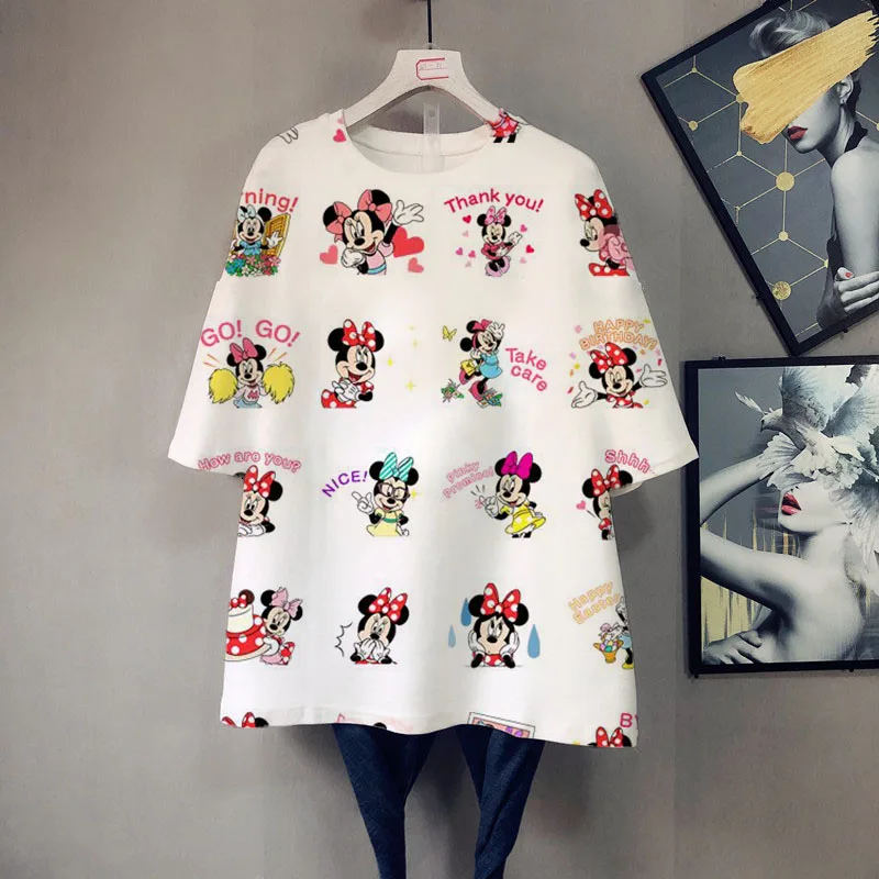 Женская футболка Disney с принтом Минни Маус, Повседневная Блузка с...