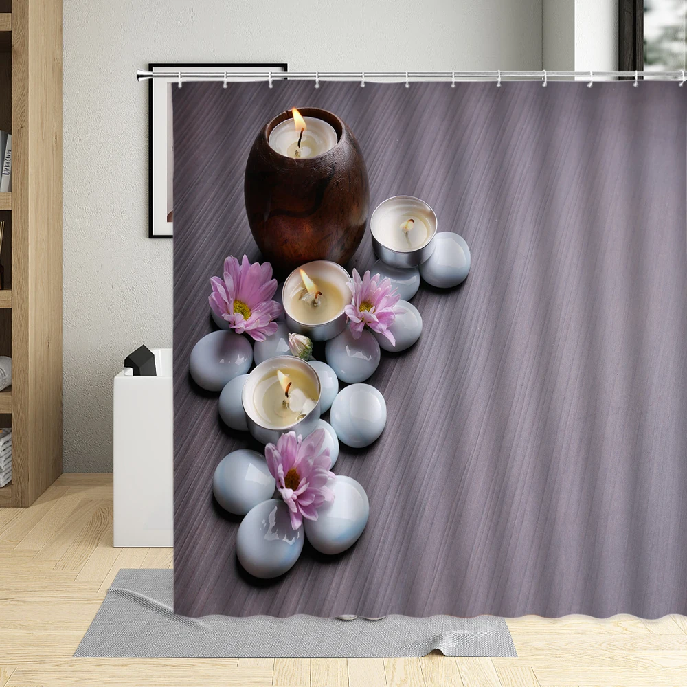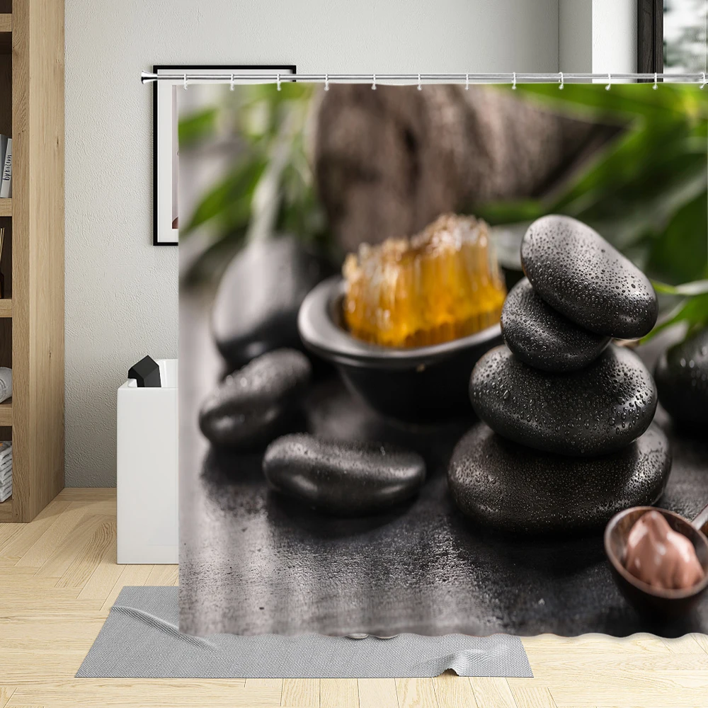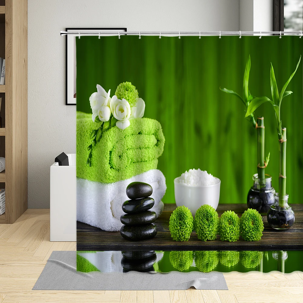 Дзен камень зеленый бамбук цветы занавеска для душа Декор для ванно...